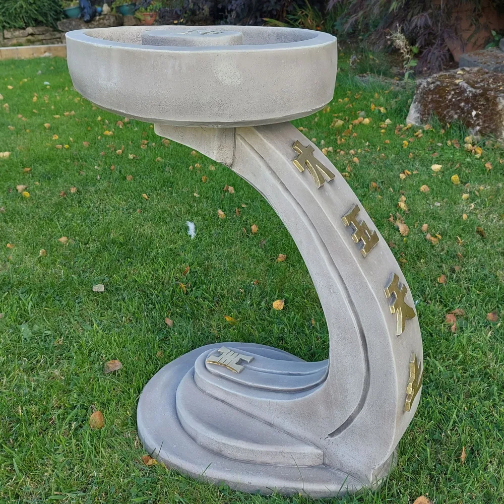 Curved Japanese Design Stone Garden Birdbath