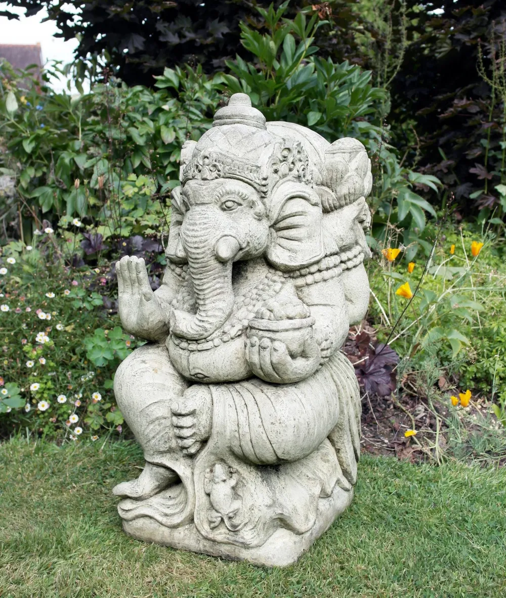 This beautiful stone Ganesh statue will be a stunning ornament for your garden, hand-made by skilled British craftsmen using traditional methods and local reconstituted stone.
