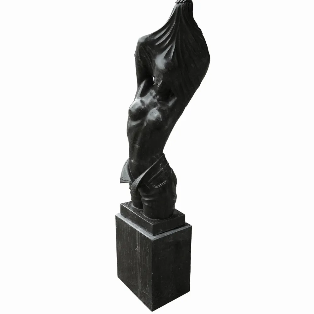 Reveal Black Marble Garden Statue on Pedestal