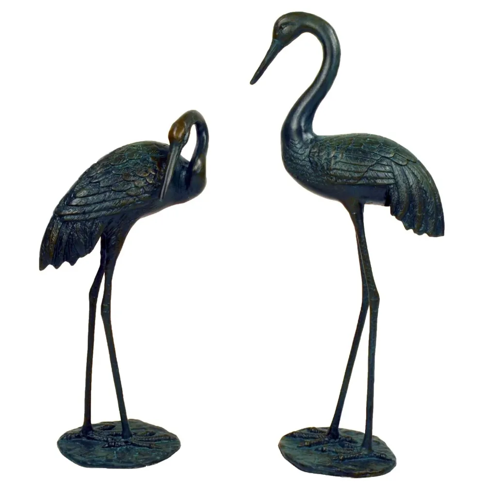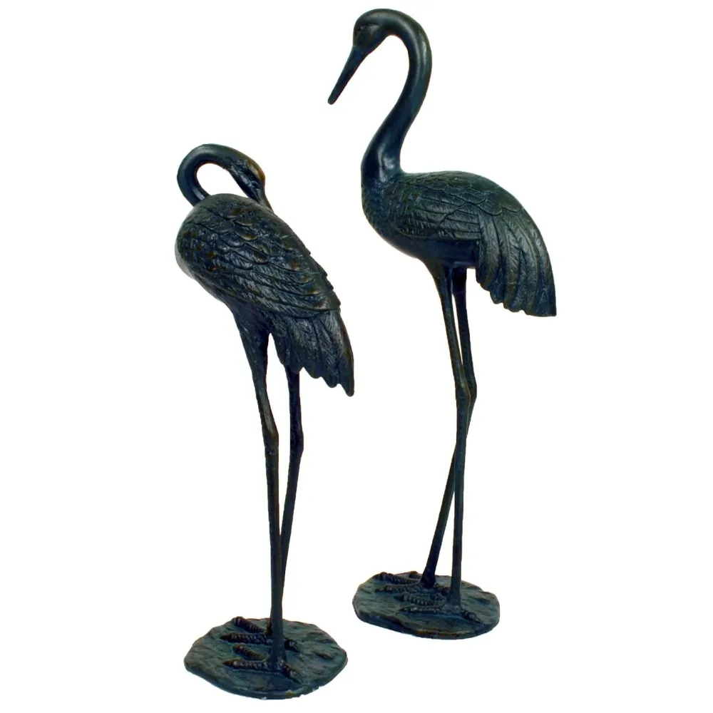 Elegant Cranes Bronze Metal Garden Ornaments (Set of 2)