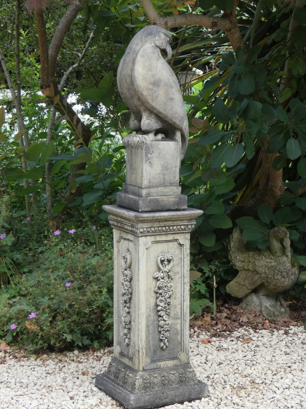 Eagle on Floral Pedestal Modern Stone Garden Statue