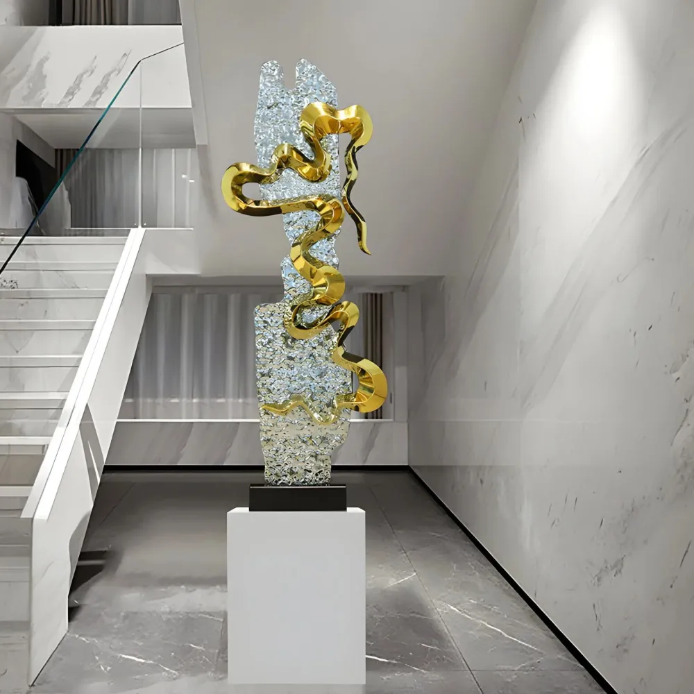 More than just décor, this contemporary sculpture serves as a statement of movement, balance and artistic vision. Its dynamic composition invites interpretation allowing viewers to experience its evolving form from different angles and perspectives. Whether showcased as a bold standalone centrepiece or incorporated into a curated collection, it enhances any space with sophistication and sculptural beauty. Designed to blend durability with artistic finesse, this modern sculpture is a testament to contemporary design adding a timeless yet innovative presence to any environment.