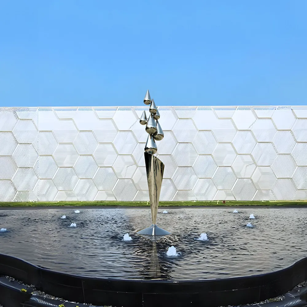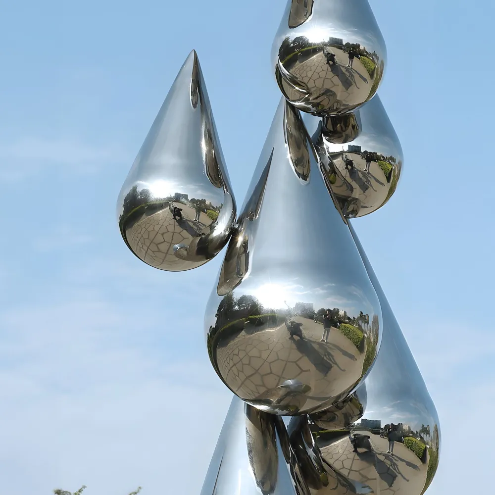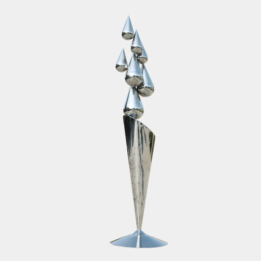 The Raindrop Dream Sculpture is designed to enhance both indoor and outdoor environments offering a seamless blend of aesthetic appeal and durability. Constructed from weather-resistant stainless steel it withstands the elements making it an excellent choice for gardens, patios or landscaped areas, where it harmonises beautifully with natural surroundings. Indoors, it becomes a sophisticated focal point for living rooms, grand entryways or corporate spaces, complementing styles ranging from modern minimalism to classic elegance.
