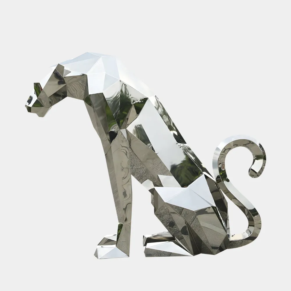Introducing the Grand Panther Geometric Garden Sculpture: a masterpiece that combines contemporary artistry with meticulous craftsmanship. This design transforms natural elegance into a striking geometric form, with angular facets that reflect light dynamically, creating mesmerising effects that shift with the environment. Constructed from premium stainless steel, its sleek polished finish adds a layer of sophistication making it an eye-catching addition to any space.