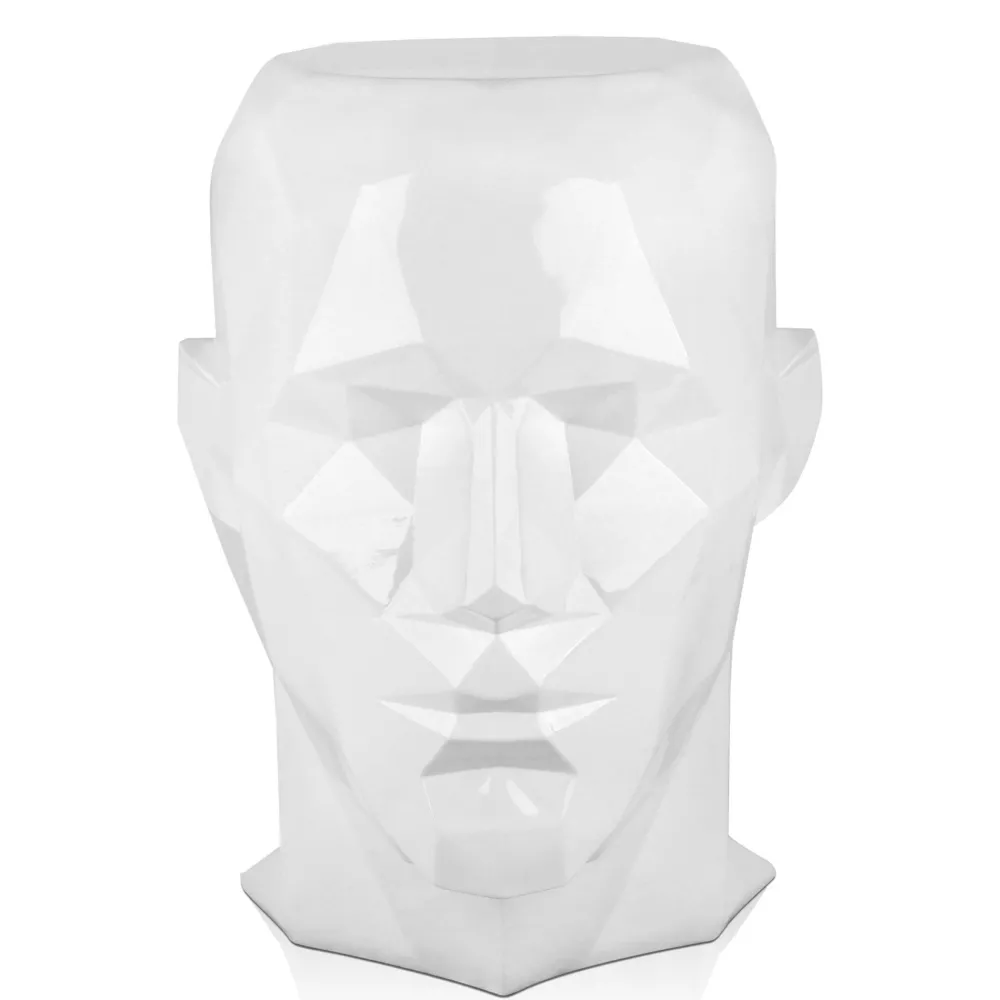 Polygon Male Head 55cm White Side Table Sculpture
