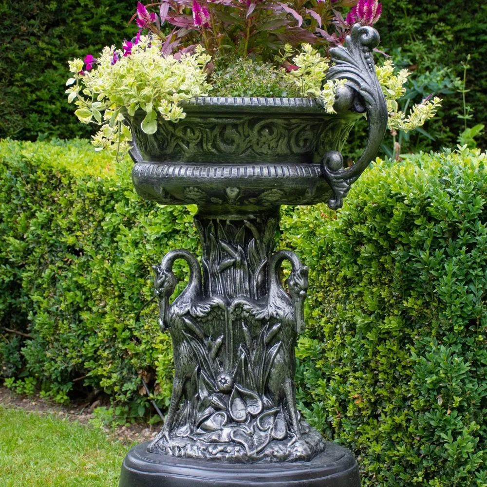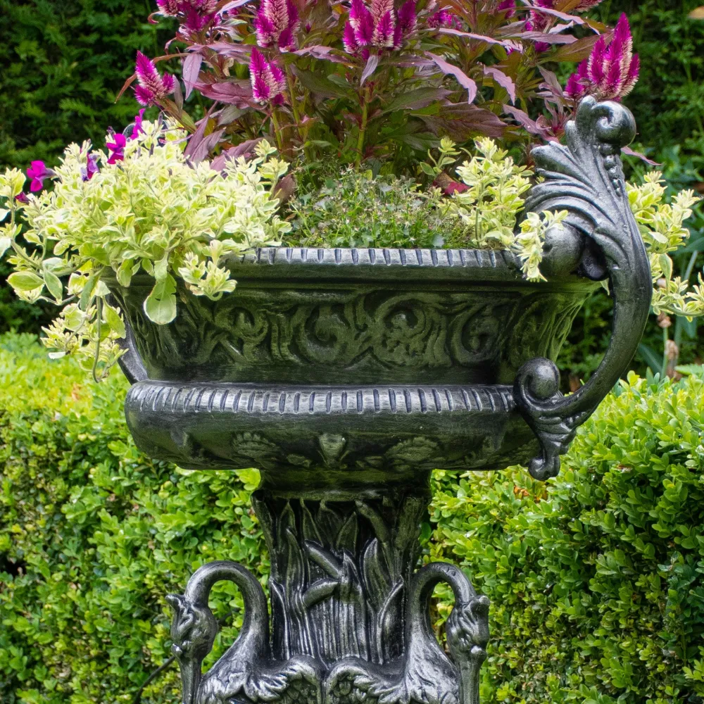 Classic Swan Urn Bronze Metal Garden Planter