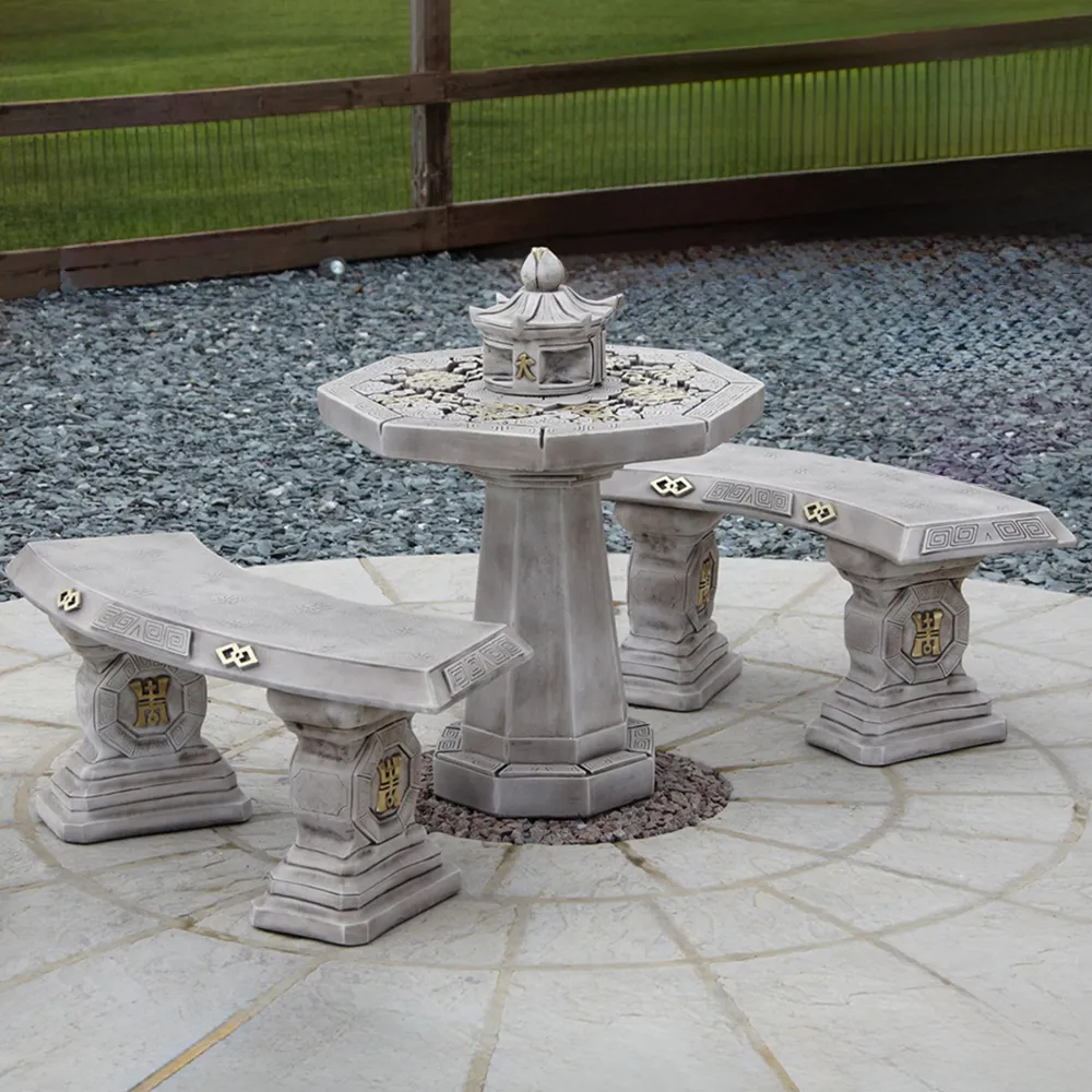 Japanese Stone Benches & Table Patio Garden Furnture Set