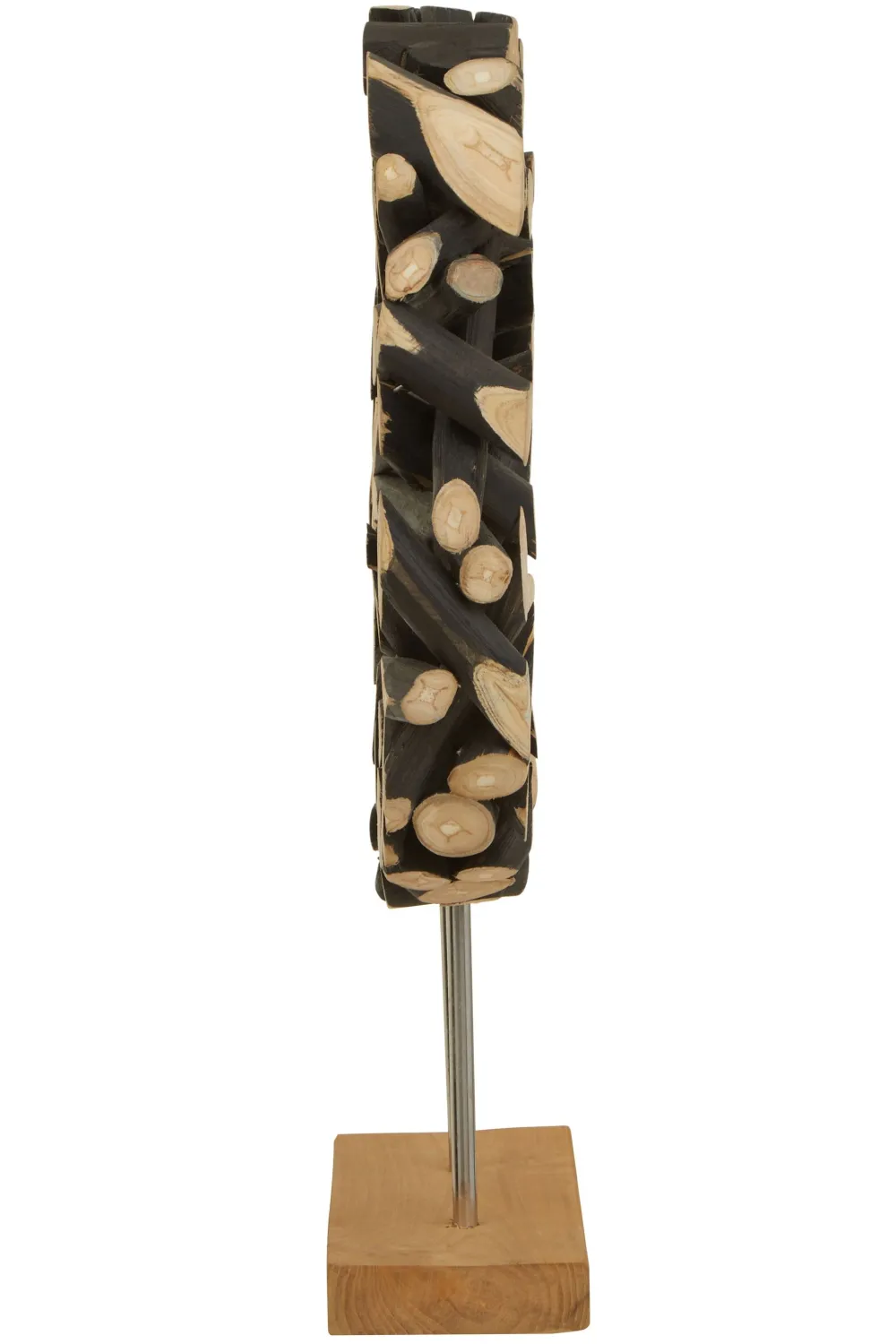 - Material: Wood Base / Teak Sculpture / Stainless Steel Rods