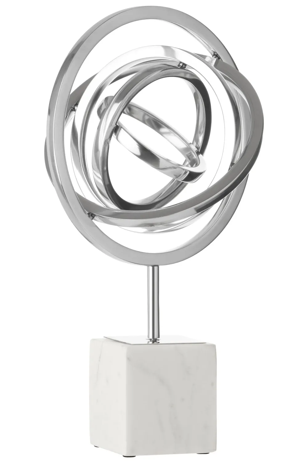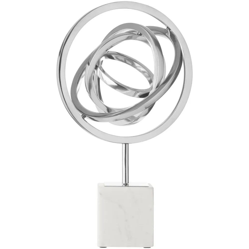 Overview: Outstanding in style this home decor sculpture is perfect as a centrepiece in the modern home. This sculpture is finished in wonderfully sleek silver and when viewed closely you will see the marks of handcraft and individualities of every piece.