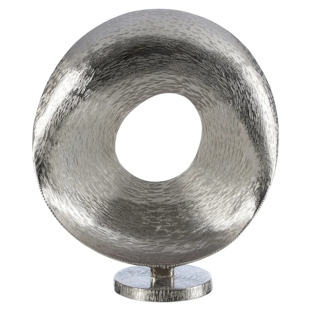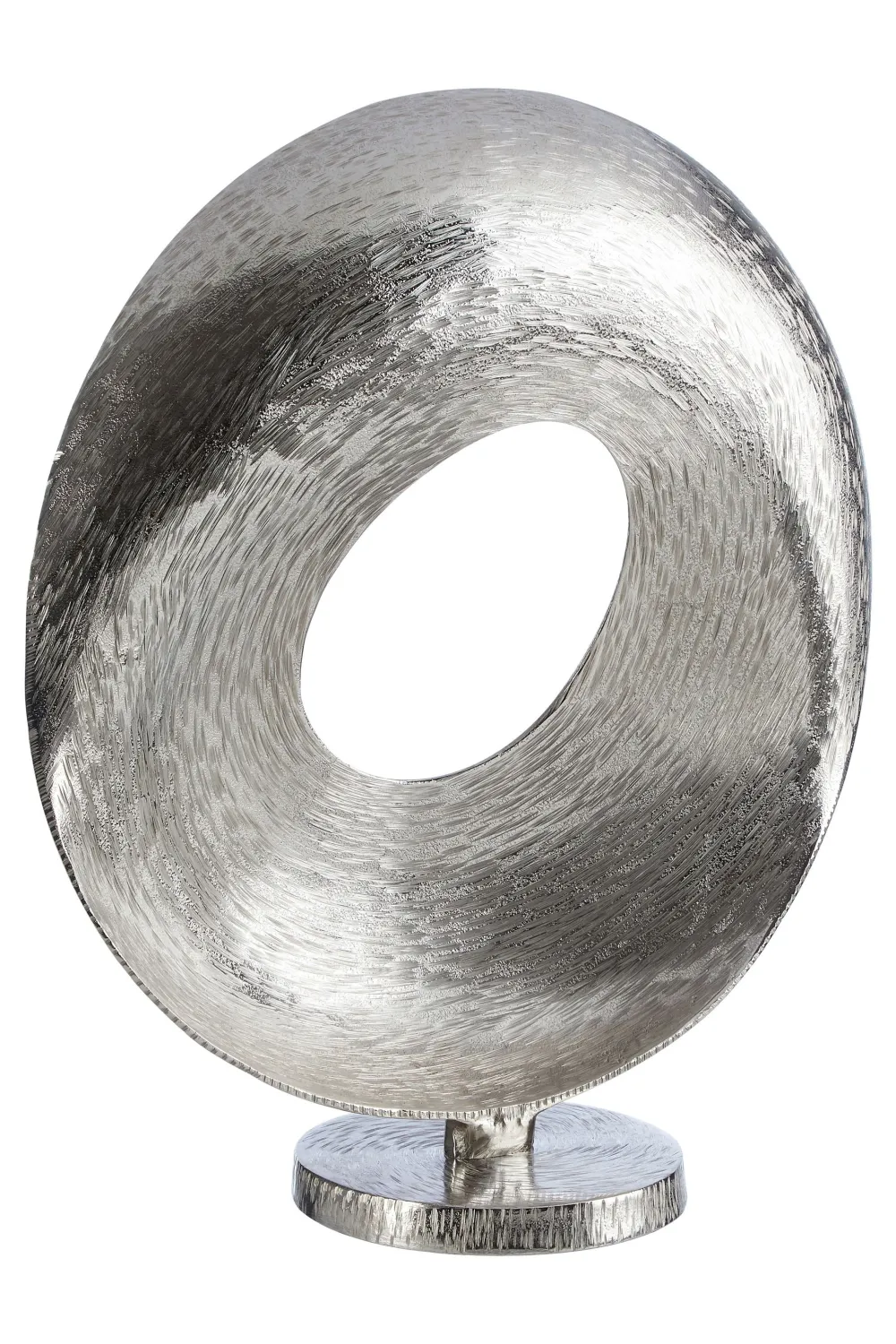 Overview: Outstanding in style this home decor sculpture is perfect as a centrepiece in the modern home. This sculpture is finished in wonderfully sleek reflective silver and when viewed closely you will see the marks of handcraft and individualities of every piece.