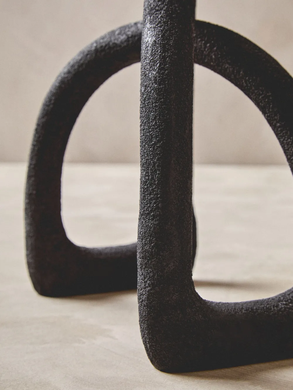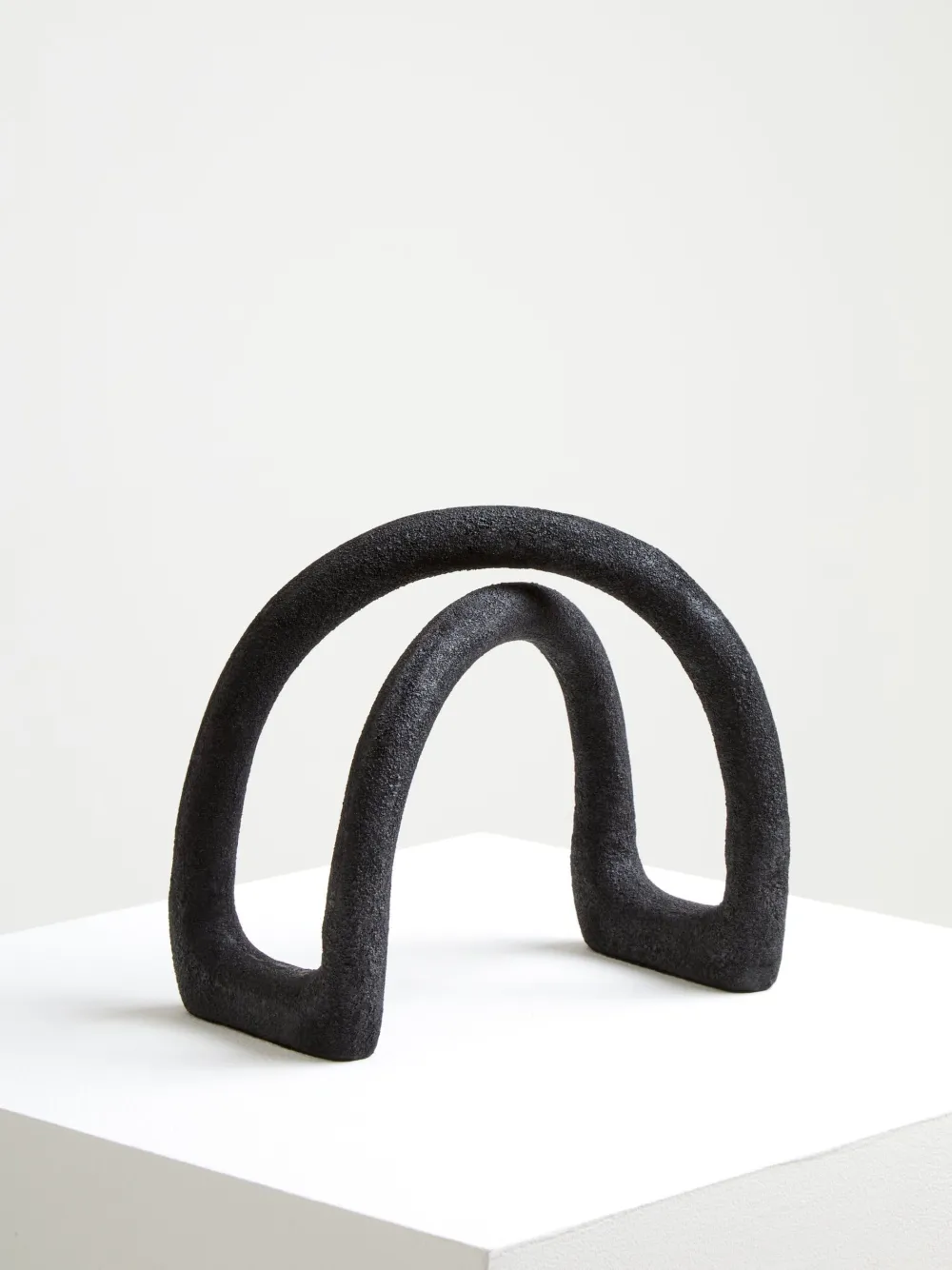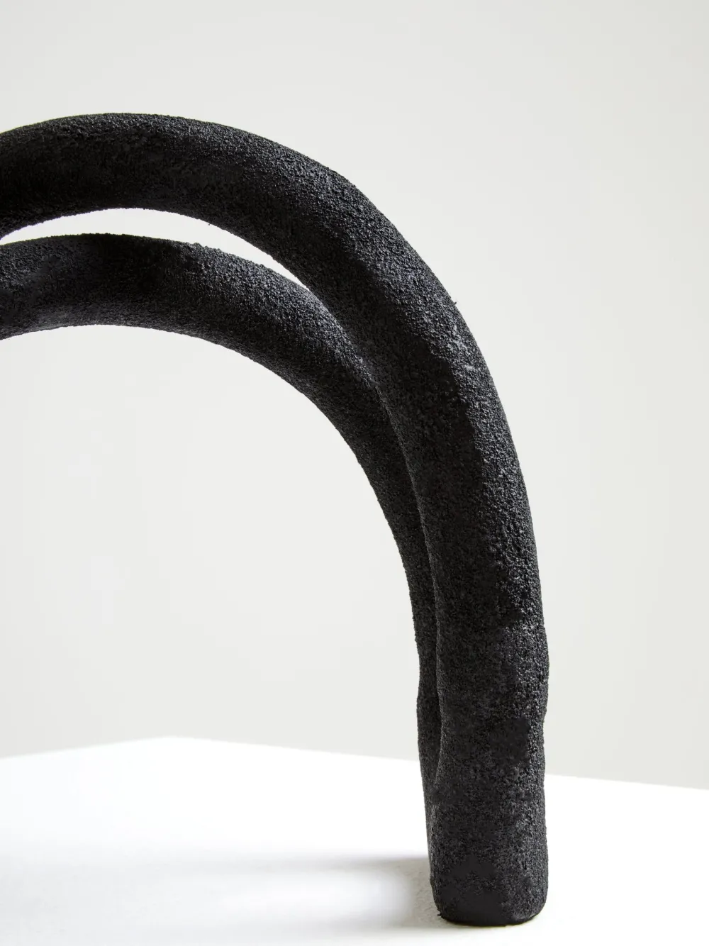 Overview: Outstanding in style this home decor sculpture is perfect as a centrepiece in the modern home. This sculpture is finished in wonderfully sleek textured black and when viewed closely you will see the marks of handcraft and individualities of every piece.