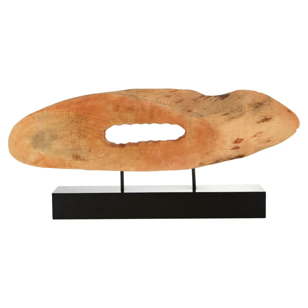 Overview: Outstanding in style this home decor sculpture is perfect as a centrepiece in the modern home. This sculpture is finished in wonderfully sleek natural wood and when viewed closely you will see the marks of handcraft and individualities of every piece.