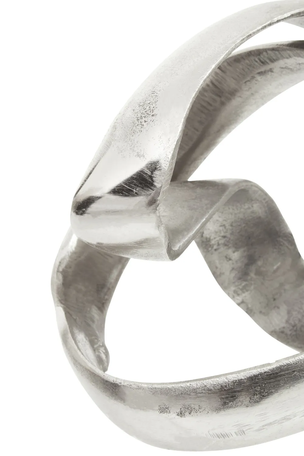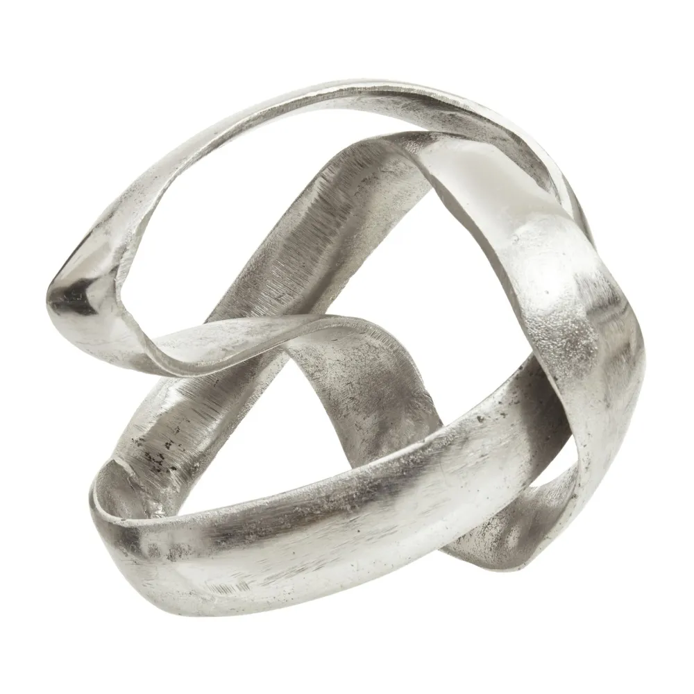 Overview: Outstanding in style these home decor sculptures are perfect as a centrepiece in the modern home. These sculptures are finished in wonderfully sleek silver nickel and when viewed closely you will see the marks of handcraft and individualities of every piece.