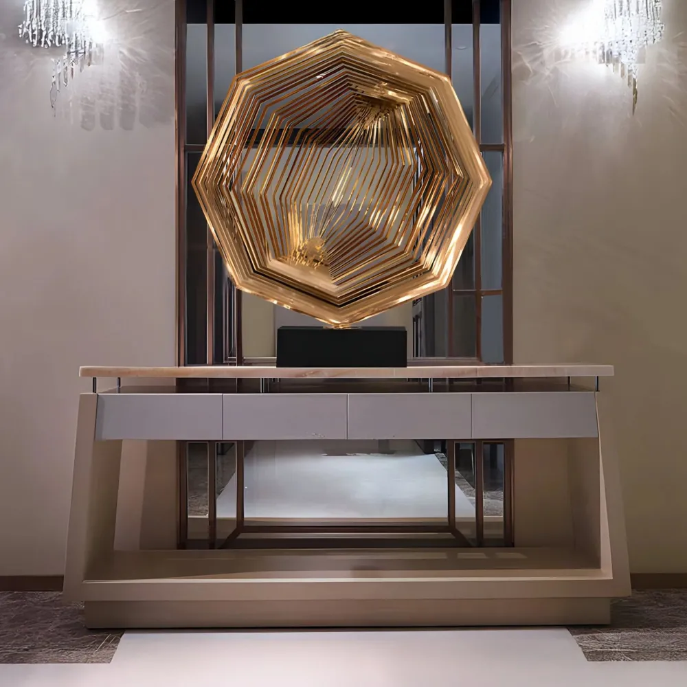 The Xenon Grid Sculpture is a striking example of modern design and expert craftsmanship. Its precise geometric structure and sleek finish create an intriguing visual effect making it a sophisticated addition to any interior. Crafted from high-quality stainless steel, the sculpture’s intricate patterns form a dynamic prism-like effect adding depth and dimension to its surroundings. The reflective surfaces interact beautifully with light casting captivating shadows and enhancing the ambiance of any space.