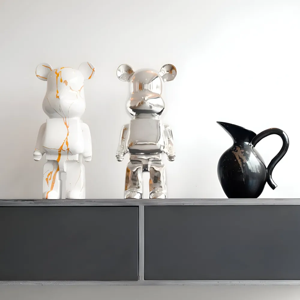 Discover the captivating Aero Bear Sculpture: a contemporary masterpiece that merges sleek design with exceptional artistry. Crafted from premium-quality resin, this striking sculpture features a water-transferred finish that authentically mimics the luxurious texture of natural materials. Its stylised form is characterised by intricate geometric facets and smooth contours, creating a bold visual statement. The reflective surface adds depth and enhances its contemporary appeal, making it a standout addition to any setting.