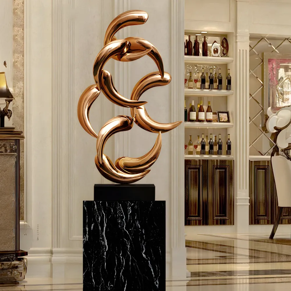 This sculpture is designed for versatility seamlessly integrating into a variety of settings. Whether showcased in a modern living space, a luxury hotel lobby or an outdoor garden it enhances its surroundings with artistic depth. The high-quality stainless steel construction ensures long-lasting durability making it suitable for both indoor and outdoor display. Weather-resistant and corrosion-proof, it maintains its brilliance even when exposed to the elements.