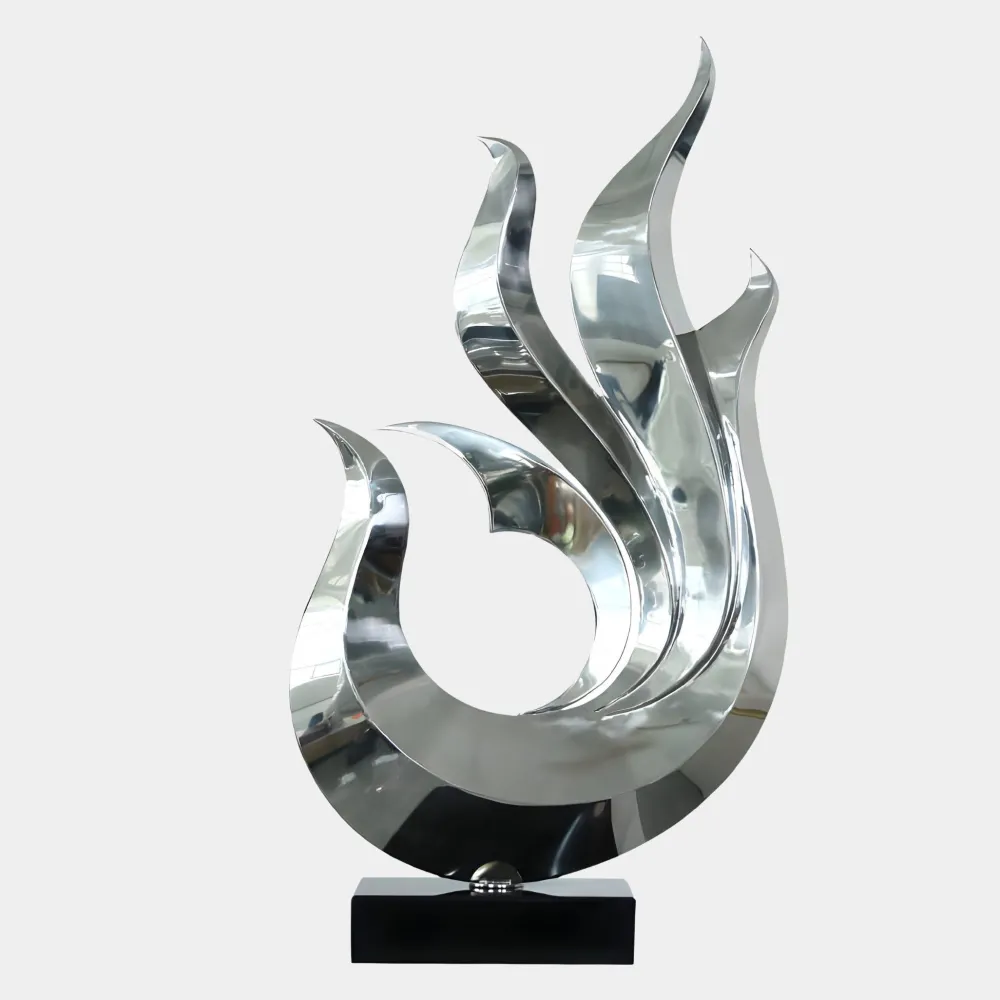 Perfect for those who appreciate contemporary artistry, this sculpture transforms any environment with its sophisticated presence. Its fluid motion and polished finish capture the essence of fire, symbolising passion and creativity. Designed to inspire and impress, this remarkable piece adds depth, movement and a sense of wonder to any space.