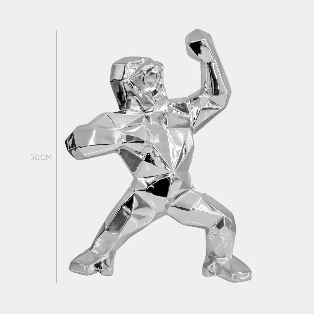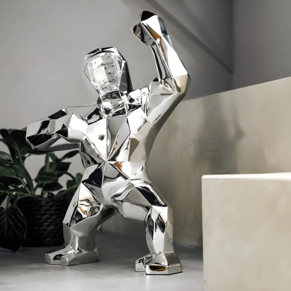 The Polygon Gorilla Sculpture is a bold and captivating piece that combines modern design with the raw essence of primal strength. Featuring a striking geometric aesthetic, this sculpture reimagines the powerful form of a gorilla through clean angular lines that create a contemporary and dynamic presence. Crafted with meticulous attention to detail, it showcases a muscular form and expressive features exuding energy and vitality in every angle.