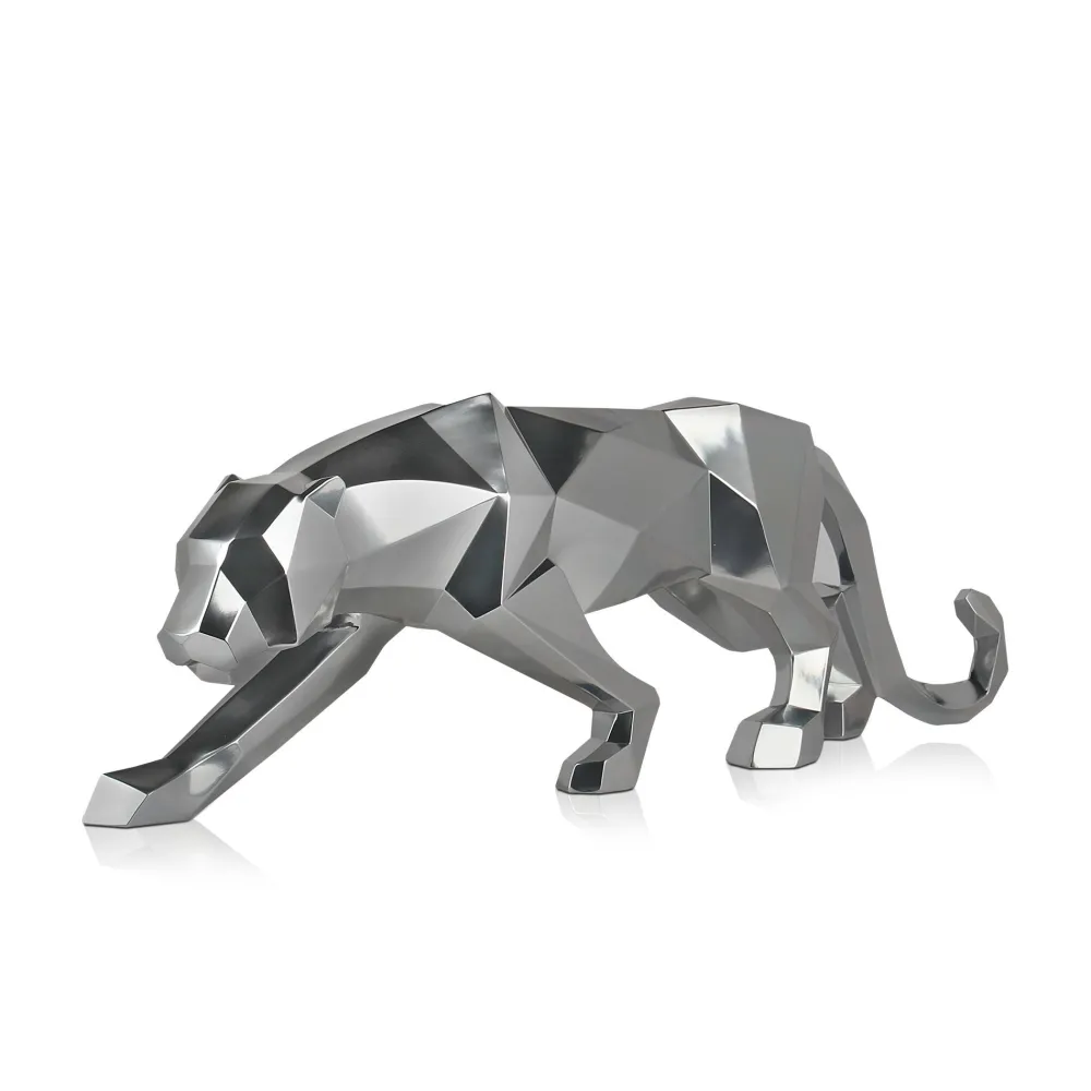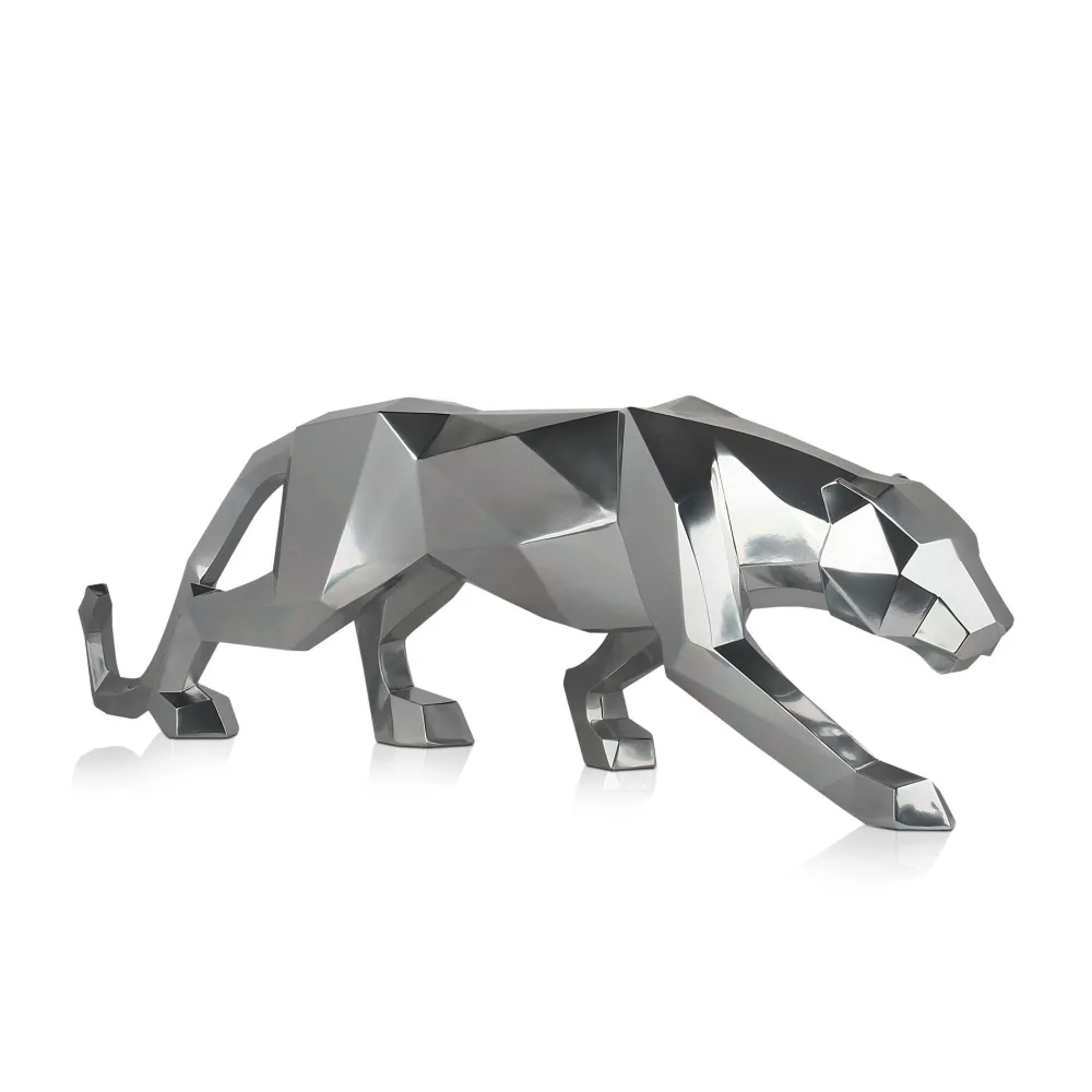 Polygon Panther 31cm Silver Resin Indoor Sculpture
