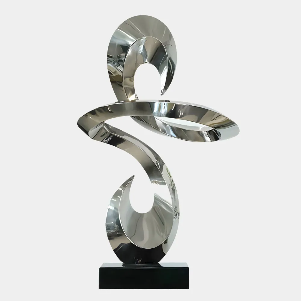The Quantum Drift Sculpture is a striking expression of modern artistry designed to bring sophistication and movement to any space. Crafted from high-quality stainless steel, its fluid twisting form creates a captivating visual flow evoking a sense of continuous motion. The polished silver finish enhances its reflective qualities allowing it to interact dynamically with light and its surroundings. Its balanced proportions make it a versatile statement piece seamlessly fitting into both intimate interiors and expansive spaces.