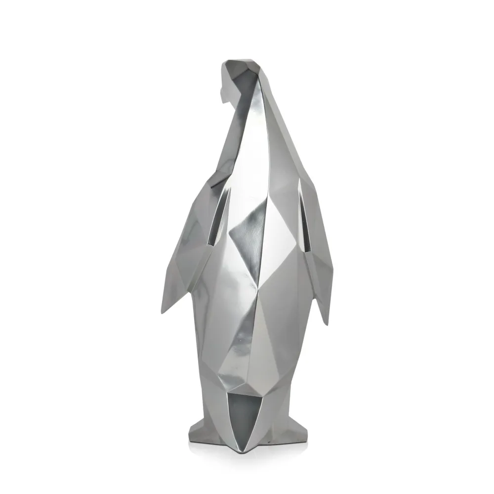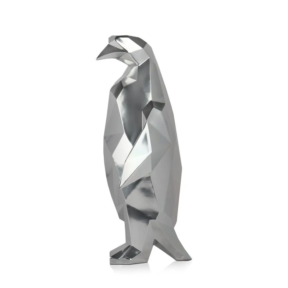 Polygon Penguin 50cm Silver Resin Indoor Sculpture