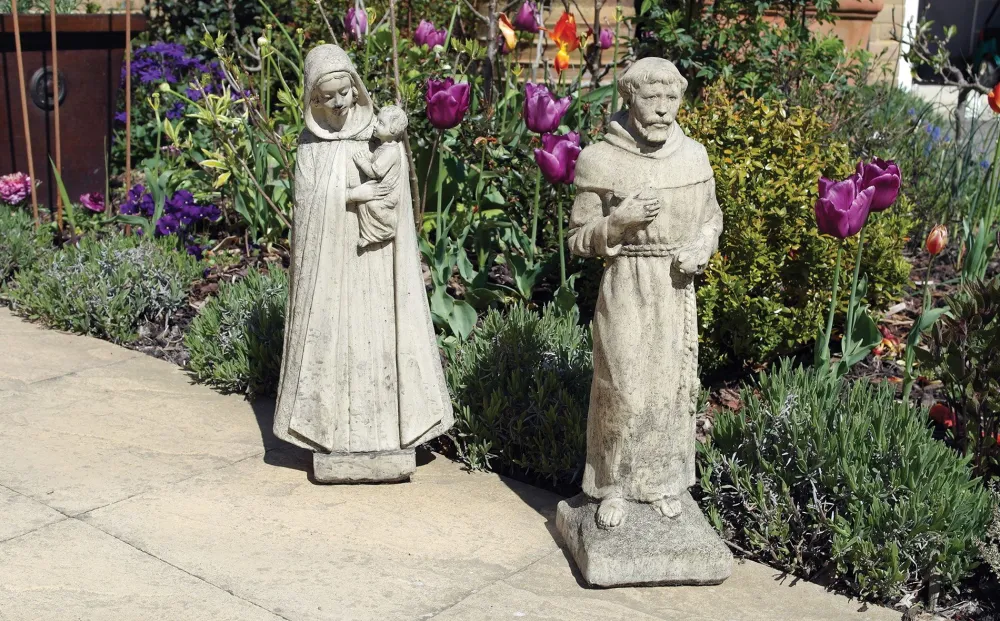Madonna & Friar Monk Stone Garden Statues.