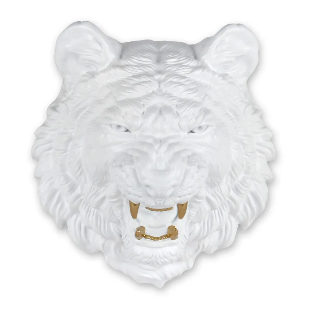 Mystic Tiger 37cm White Resin Wall Sculpture