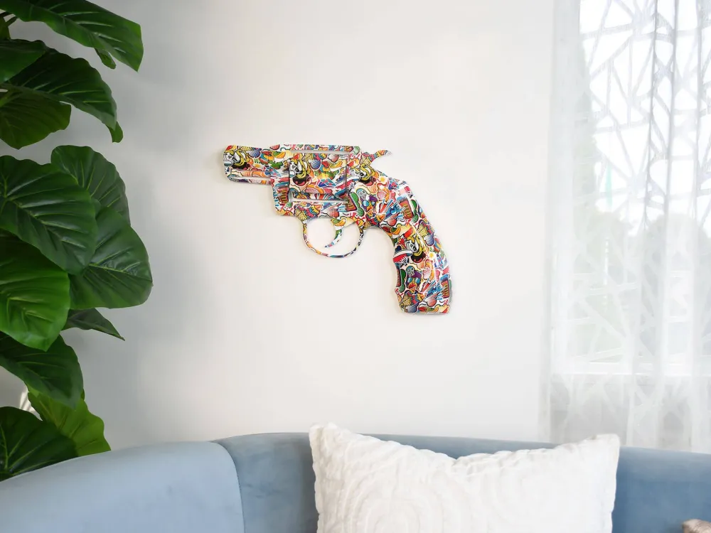 Retro Revolver 32cm Pop Art Resin Wall Sculpture