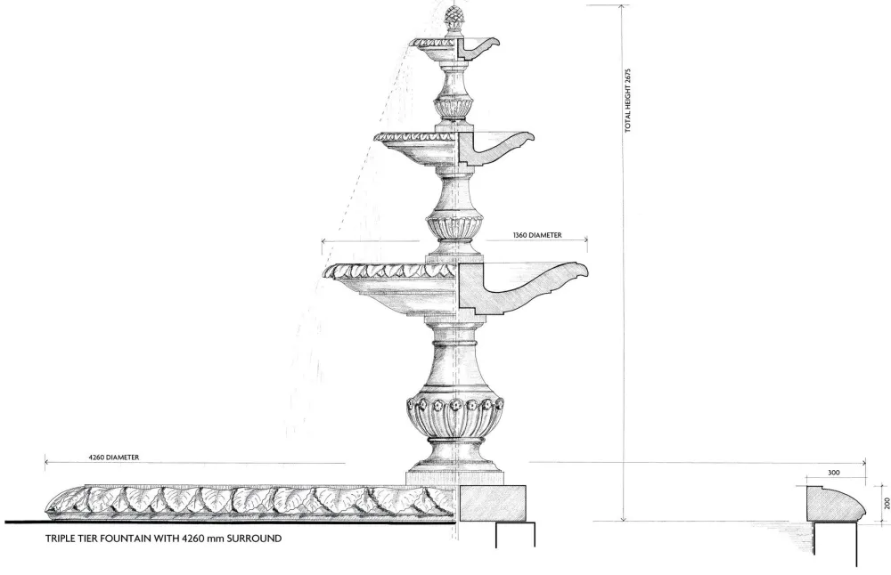 - Lower Fountain Bowl Width: 136cm Diameter