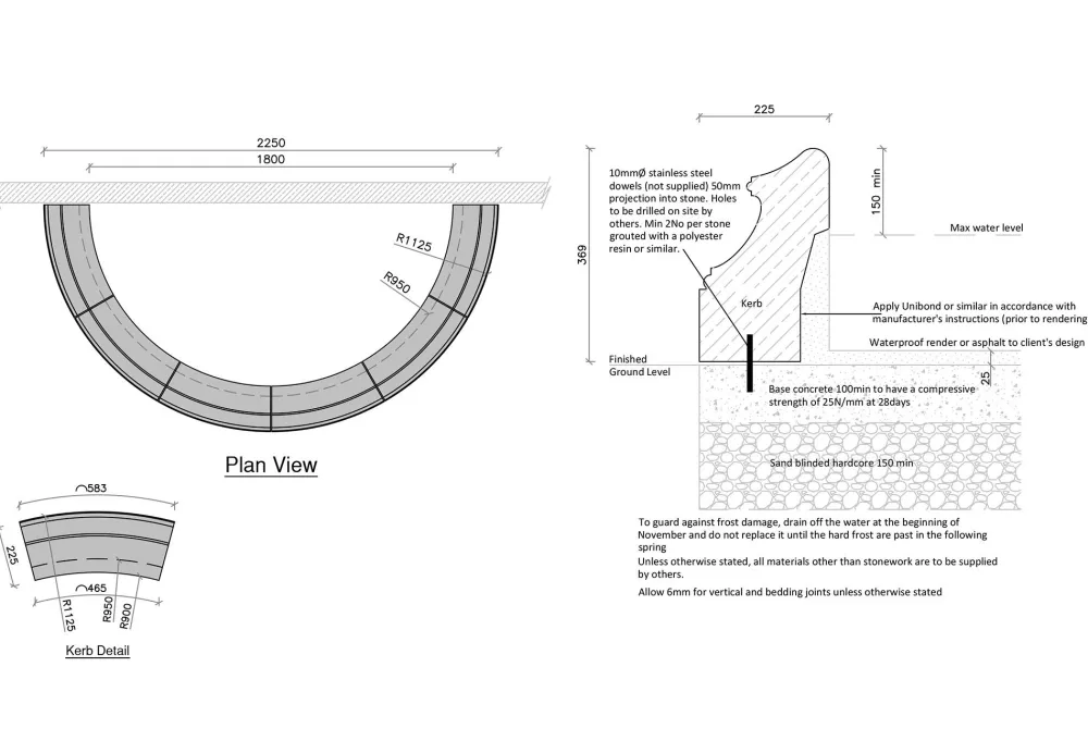 - Note: The pool surround requires a waterproof render. The image featured is the Small Half Circle Pool Surround and does not include a water pump.