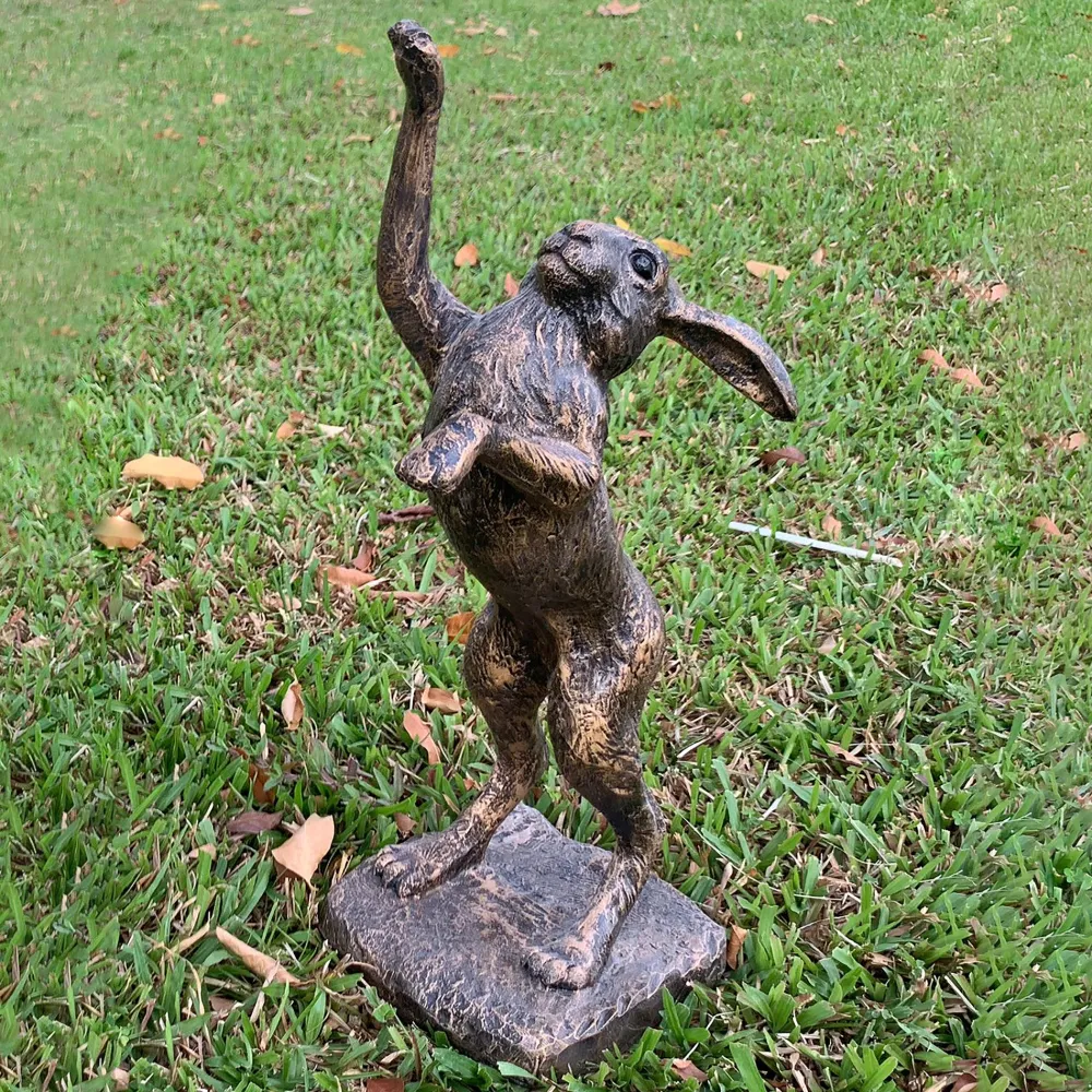 Playful Hare 65cm Bronze Resin Garden Ornament v2