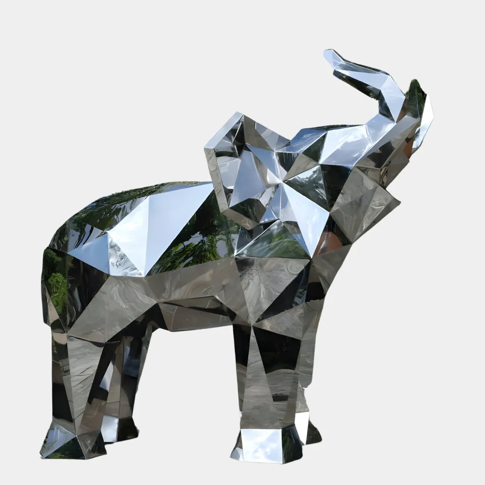 Introducing the Elephant Geometric Garden Sculpture: a masterpiece that combines contemporary artistry with meticulous craftsmanship. This design transforms natural elegance into a striking geometric form, with angular facets that reflect light dynamically, creating mesmerising effects that shift with the environment. Constructed from premium stainless steel, its sleek polished finish adds a layer of sophistication making it an eye-catching addition to any space.