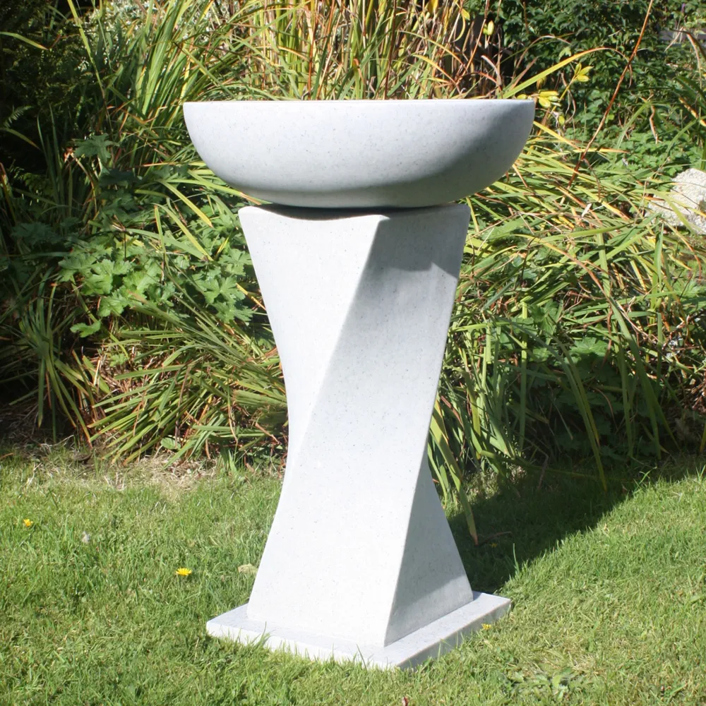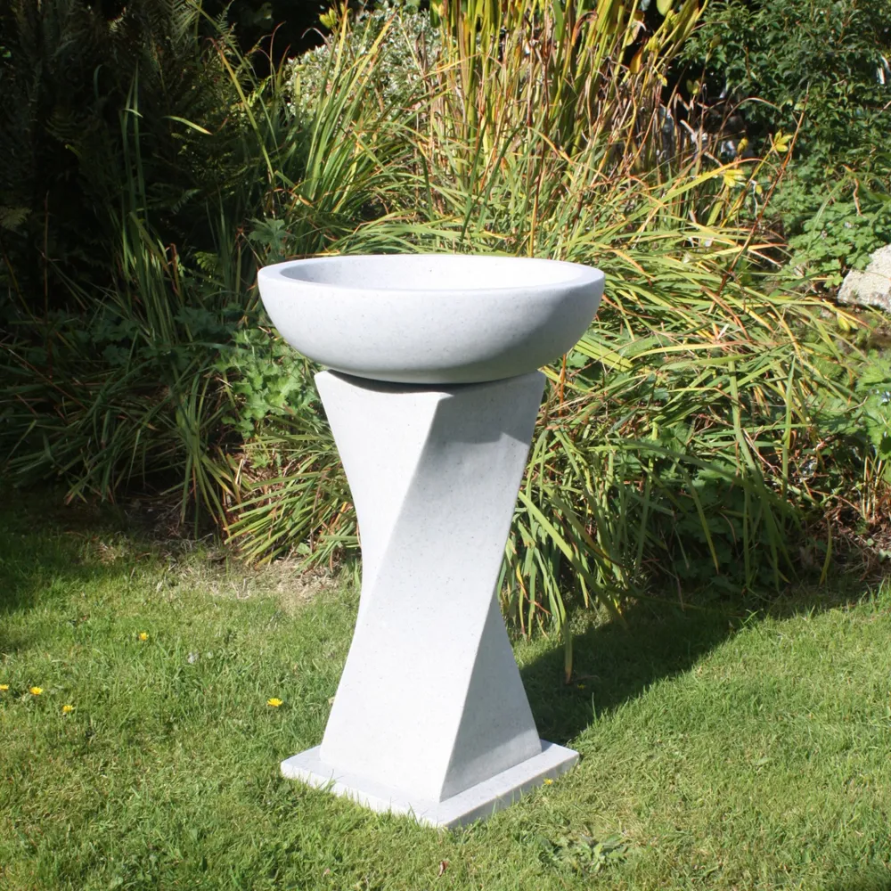Helix Contemporary Granite Resin Garden Birdbath