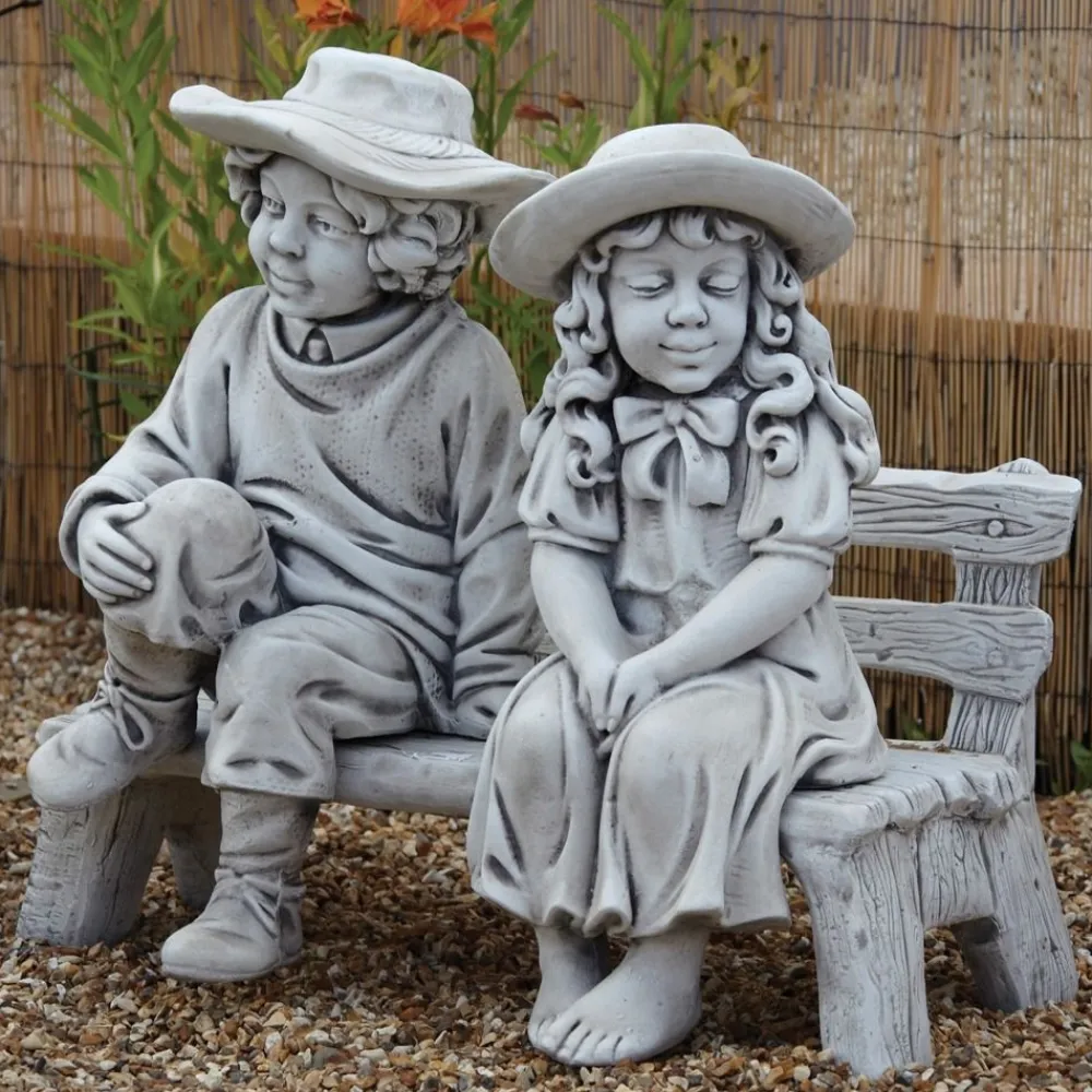Boy & Girl on Bench Stone Garden Statue