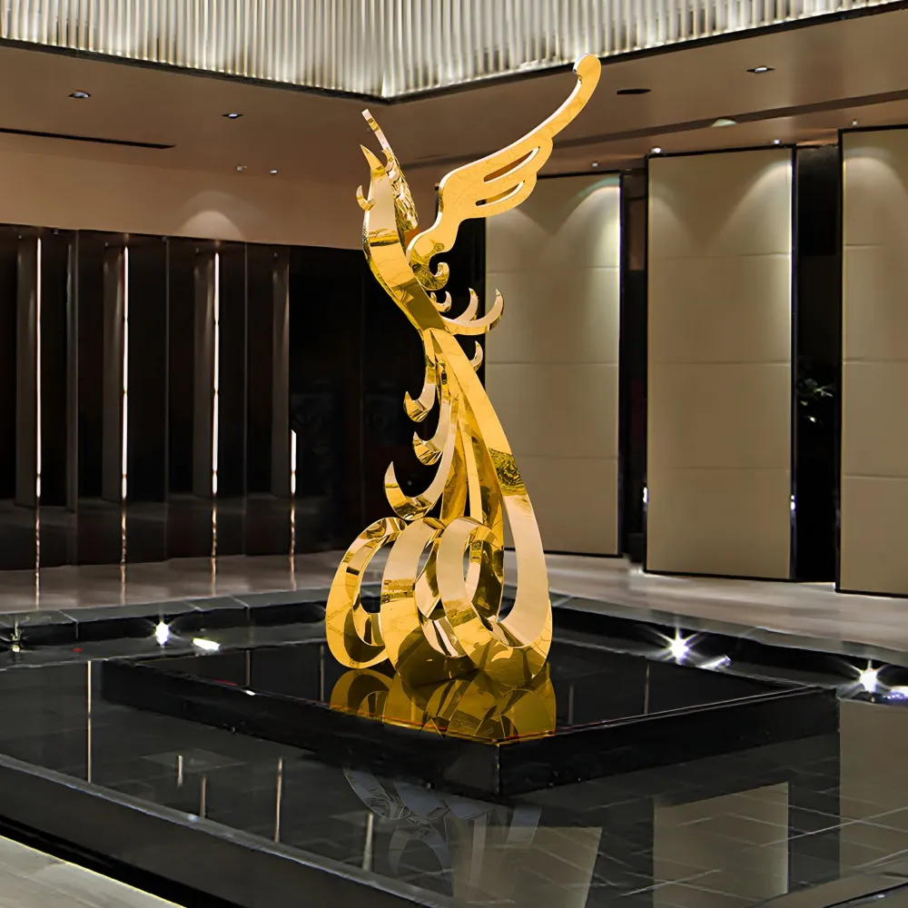 Whether positioned in a peaceful garden retreat or an urban terrace this sculpture serves as a stunning focal point, enhancing the aesthetic appeal of any space. Beyond its visual impact, it embodies themes of renewal, strength and the continuous cycle of life. The Phoenix Rising Sculpture is a blend of modern artistry and timeless symbolism offering a bold and captivating statement for any environment.