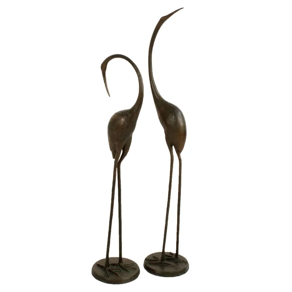 Modern Cranes Bronze Metal Garden Ornaments (Set of 2)
