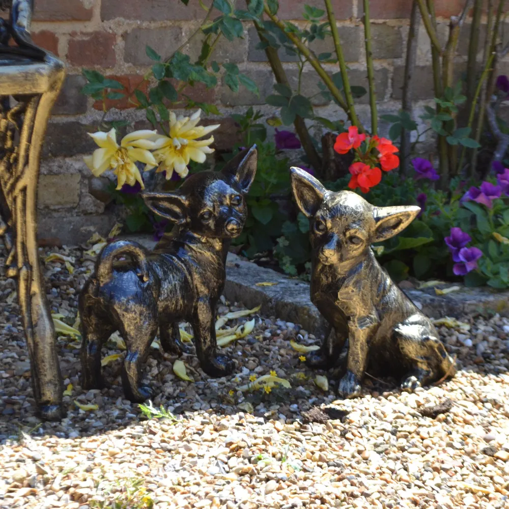 Chihuahua Dogs Bronze Metal Garden Ornaments (Set of 2)