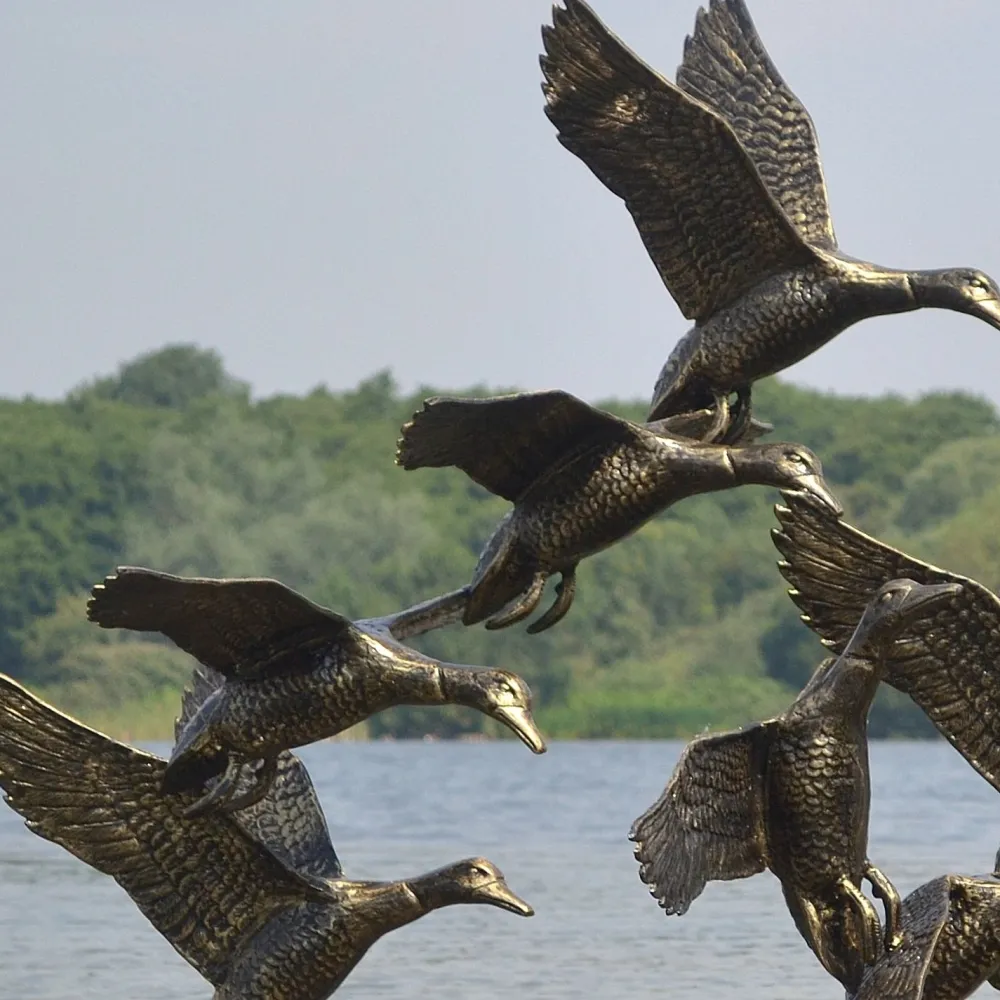Flight of Ducks Life-Size Bronze Metal Garden Statue