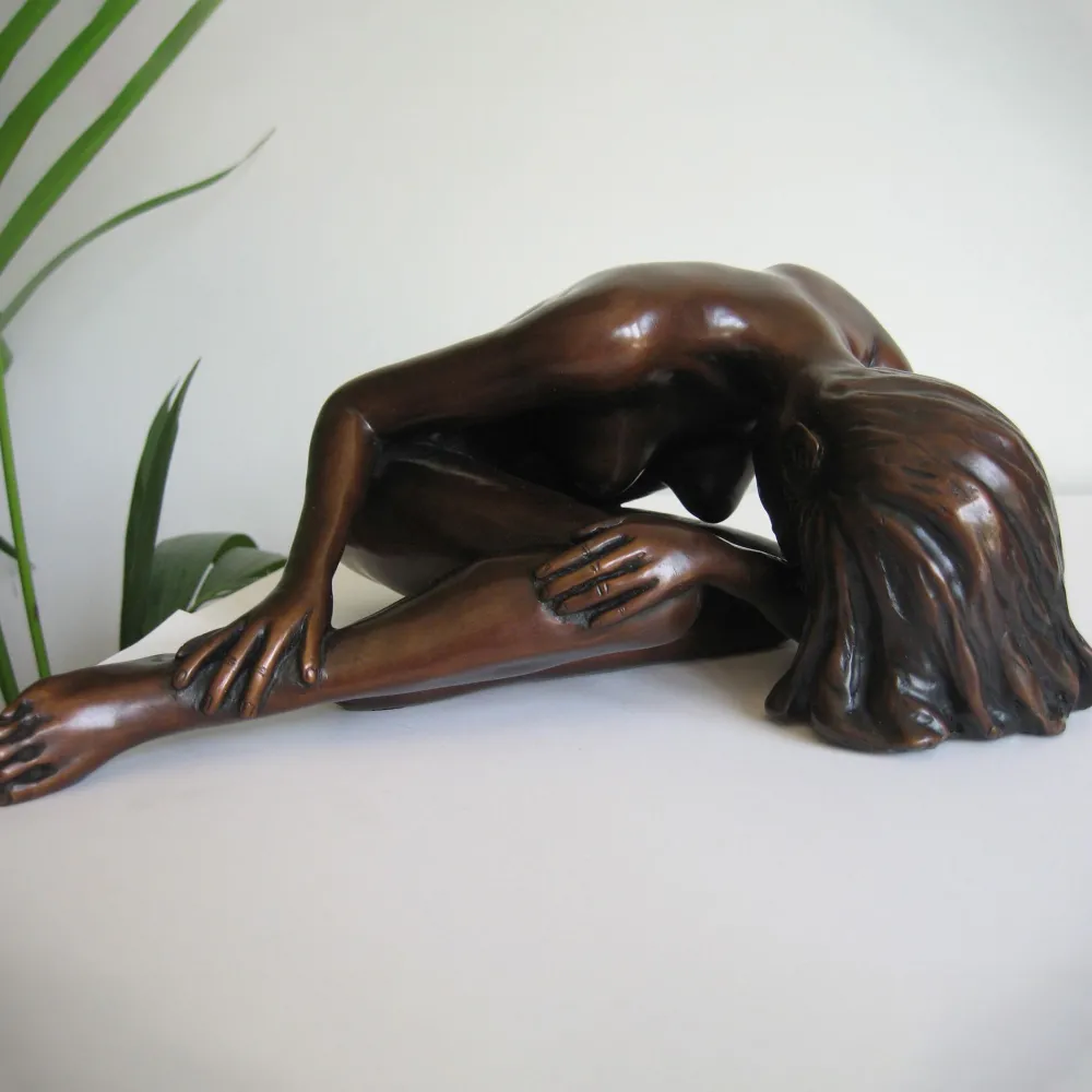 Overview: The female figure is a thing of beauty and is often depicted in all types of art throughout the ages. Now you can decorate your home or garden with this beautiful and elegant sculpture. She is a stunning nude figure, created with an artistic eye and attention to detail and will sit on the edge of a wall, table, pond or other surface.
