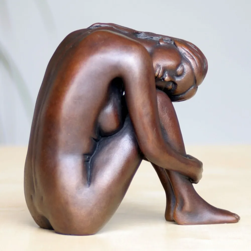 Overview: The female figure is a thing of beauty and is often depicted in all types of art throughout the ages. Now you can decorate your home or garden with this beautiful and elegant sculpture. She is a stunning nude figure, created with an artistic eye and attention to detail and will sit on the edge of a wall, table, pond or other surface.