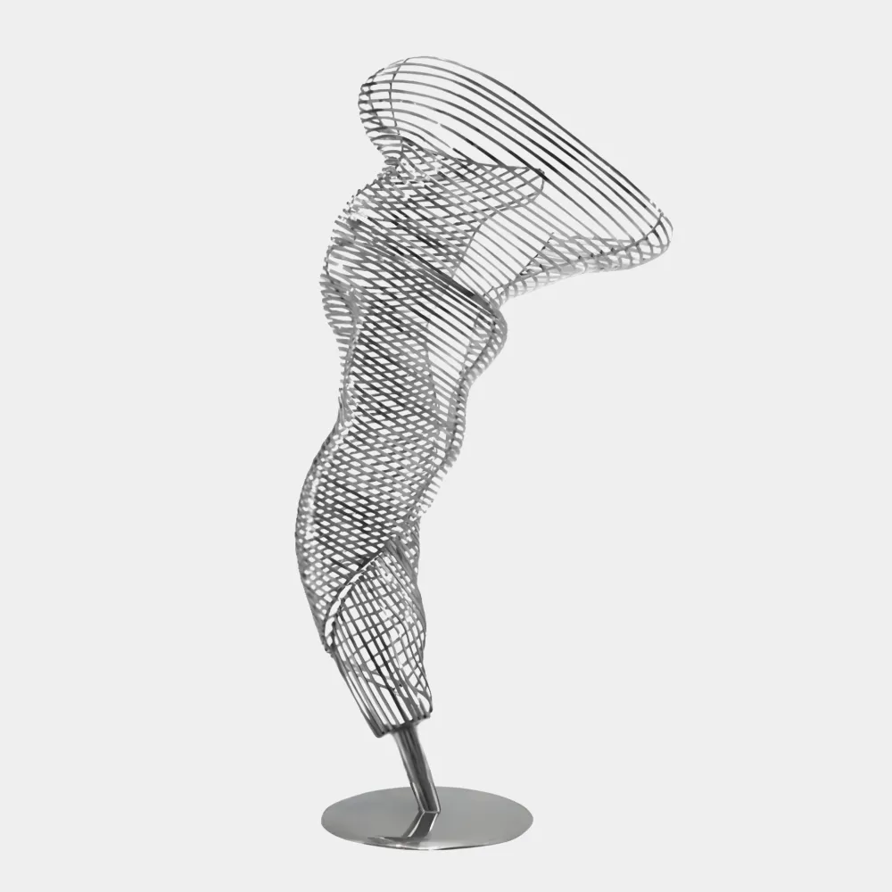 The Tornado Sculpture is a captivating expression of movement, artistry and contemporary sophistication. Crafted from high-quality stainless steel this striking piece features an intricate vortex design with swirling layered curves that create an illusion of continuous motion. The polished steel finish enhances its reflective properties dynamically interacting with light and its surroundings to produce an ever-changing visual effect. With its bold presence and flowing form this sculpture serves as a compelling focal point that draws attention and sparks conversation.