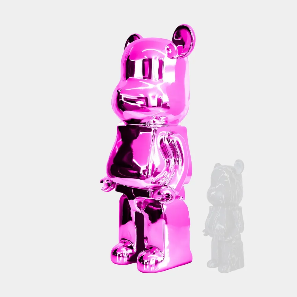 A bold statement of Modern Art and Design: This striking Aero Bear Sculpture seamlessly combines contemporary artistry with innovative design. It features an electroplated finish that exudes vibrancy and sophistication. Expertly crafted from high-quality resin, the sculpture showcases a stylised bear with geometric facets, blending smooth curves and sharp angular lines to create a dynamic and visually engaging piece. The electroplated surface offers a sleek mirror-like sheen, ensuring the sculpture becomes an unforgettable centrepiece in any space. Its flawless craftsmanship and premium materials reflect a deep appreciation for modern art.