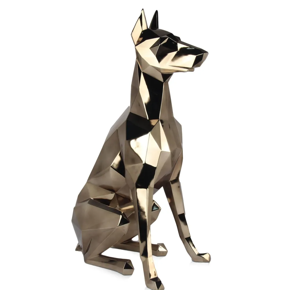 Polygon Doberman 82cm Gold Resin Indoor Sculpture