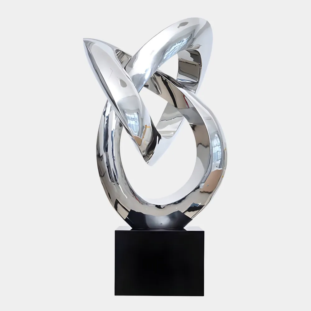 The Infinity Fusion Sculpture is designed to enhance both indoor and outdoor environments with its timeless appeal and durable construction. Its robust stainless steel composition ensures longevity, making it suitable for gardens, patios and landscaped areas where it seamlessly integrates with natural surroundings and architectural features. Indoors, it serves as a sophisticated focal point in living rooms, lobbies or art galleries complementing styles ranging from minimalist to contemporary.