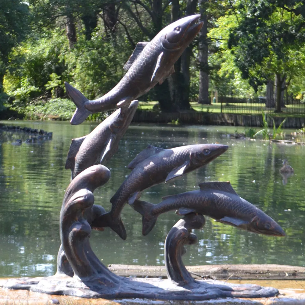 Atlantic Salmon Fish Bronze Metal Garden Statue