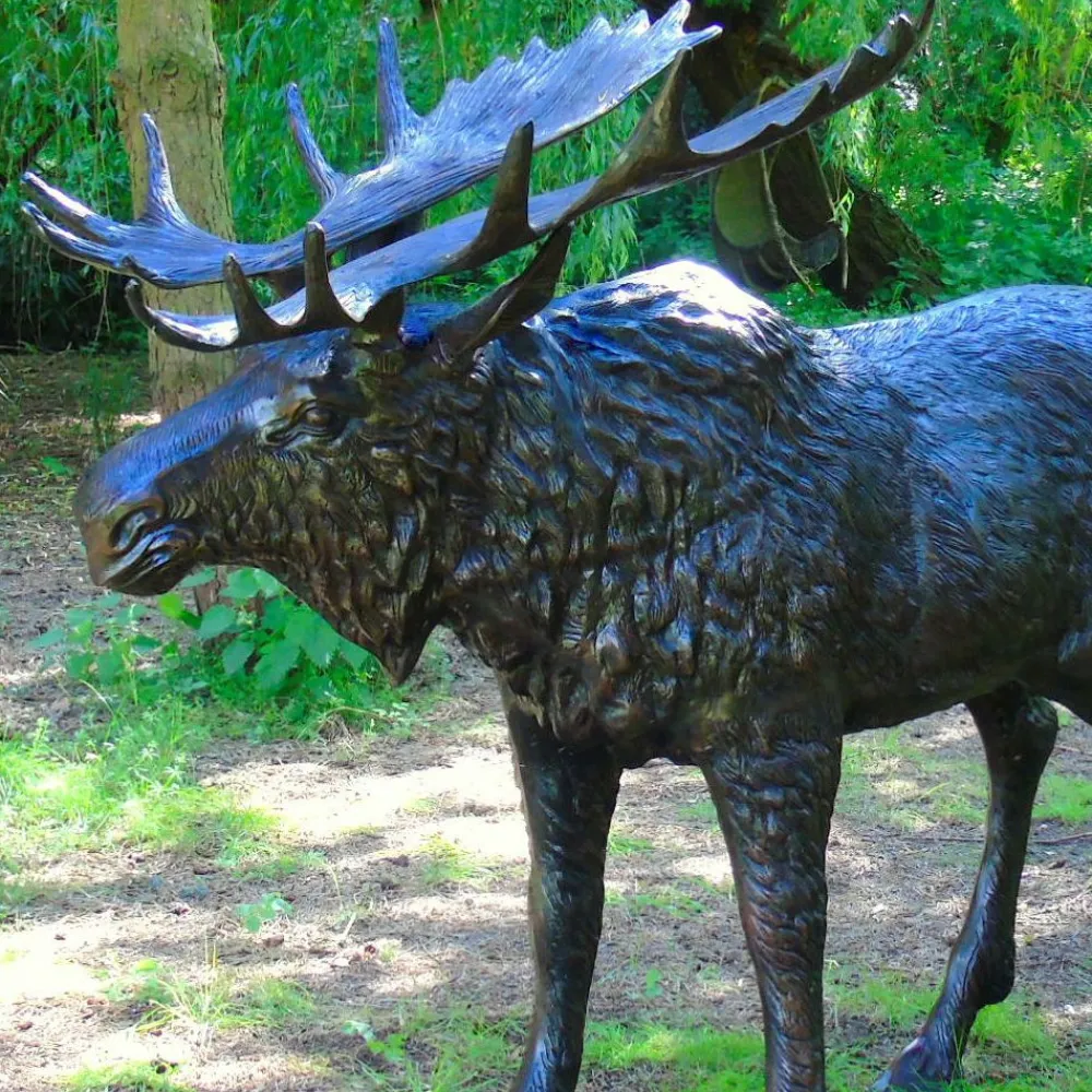 Wild Moose Life-Size Bronze Metal Garden Statue