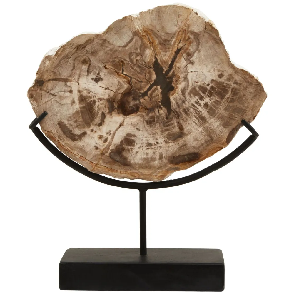 Overview: Outstanding in style this home decor sculpture is perfect as a centrepiece in the modern home. This sculpture is finished in wonderfully sleek petrified wood and when viewed closely you will see the marks of handcraft and individualities of every piece.