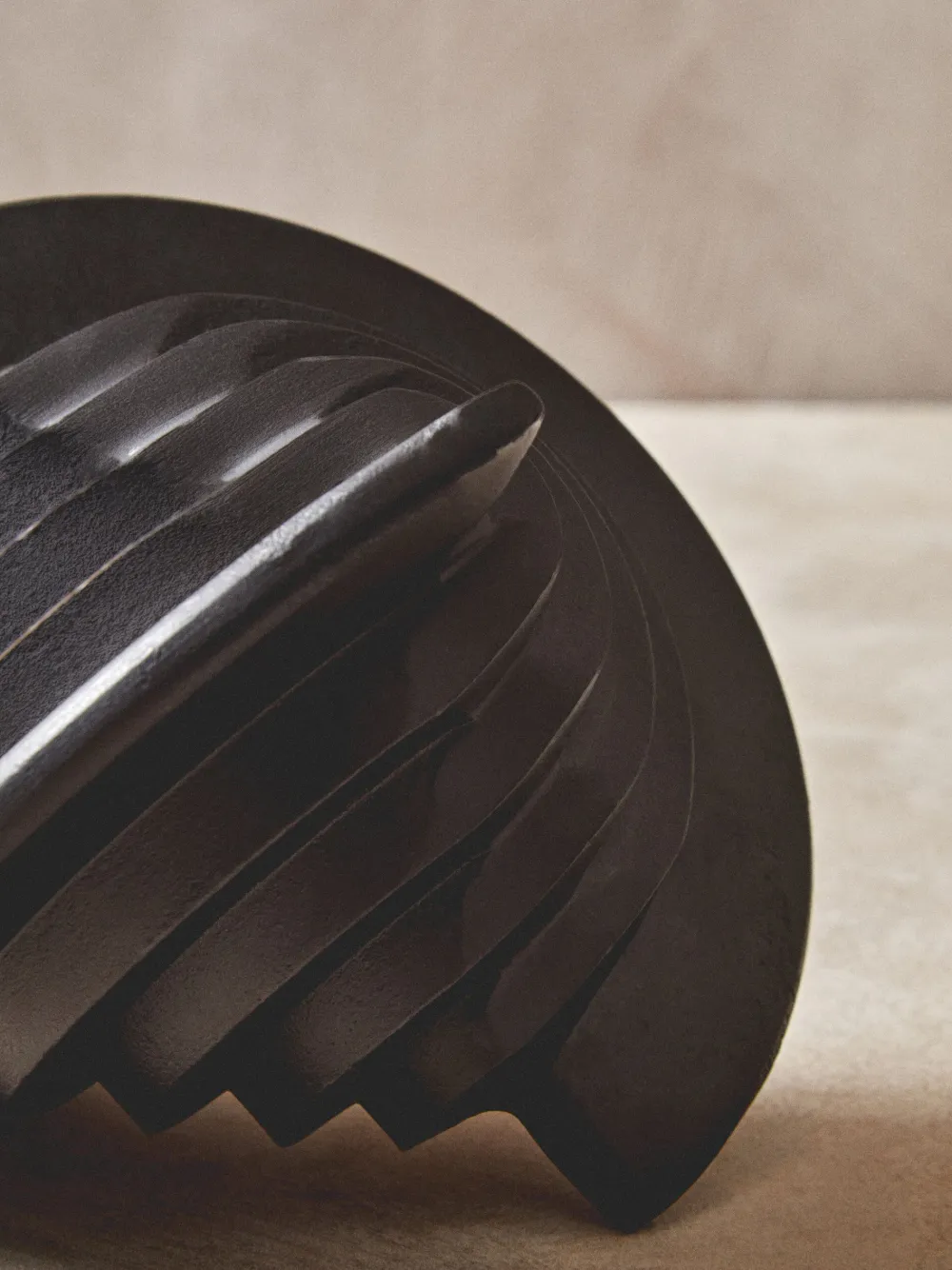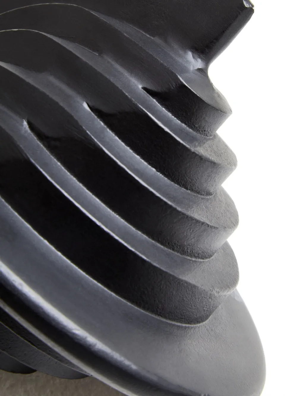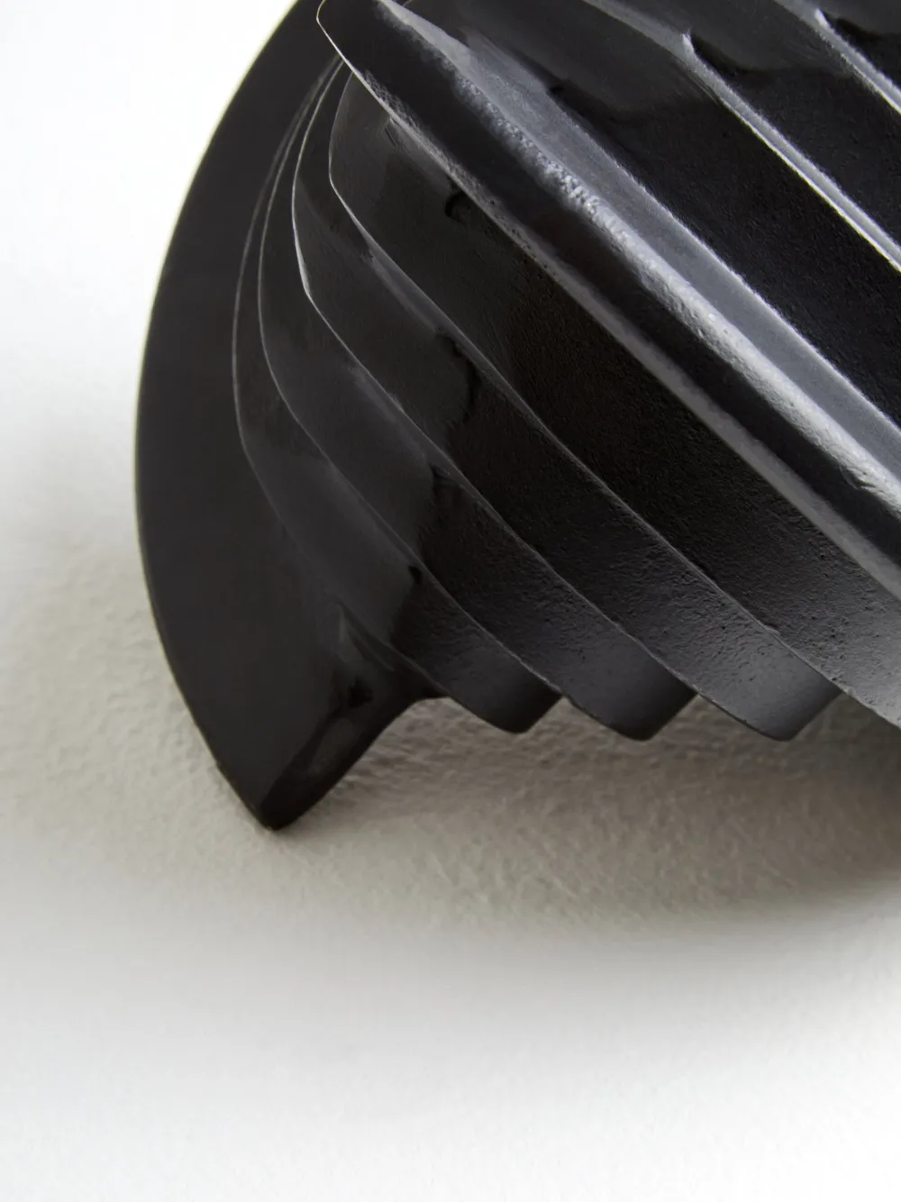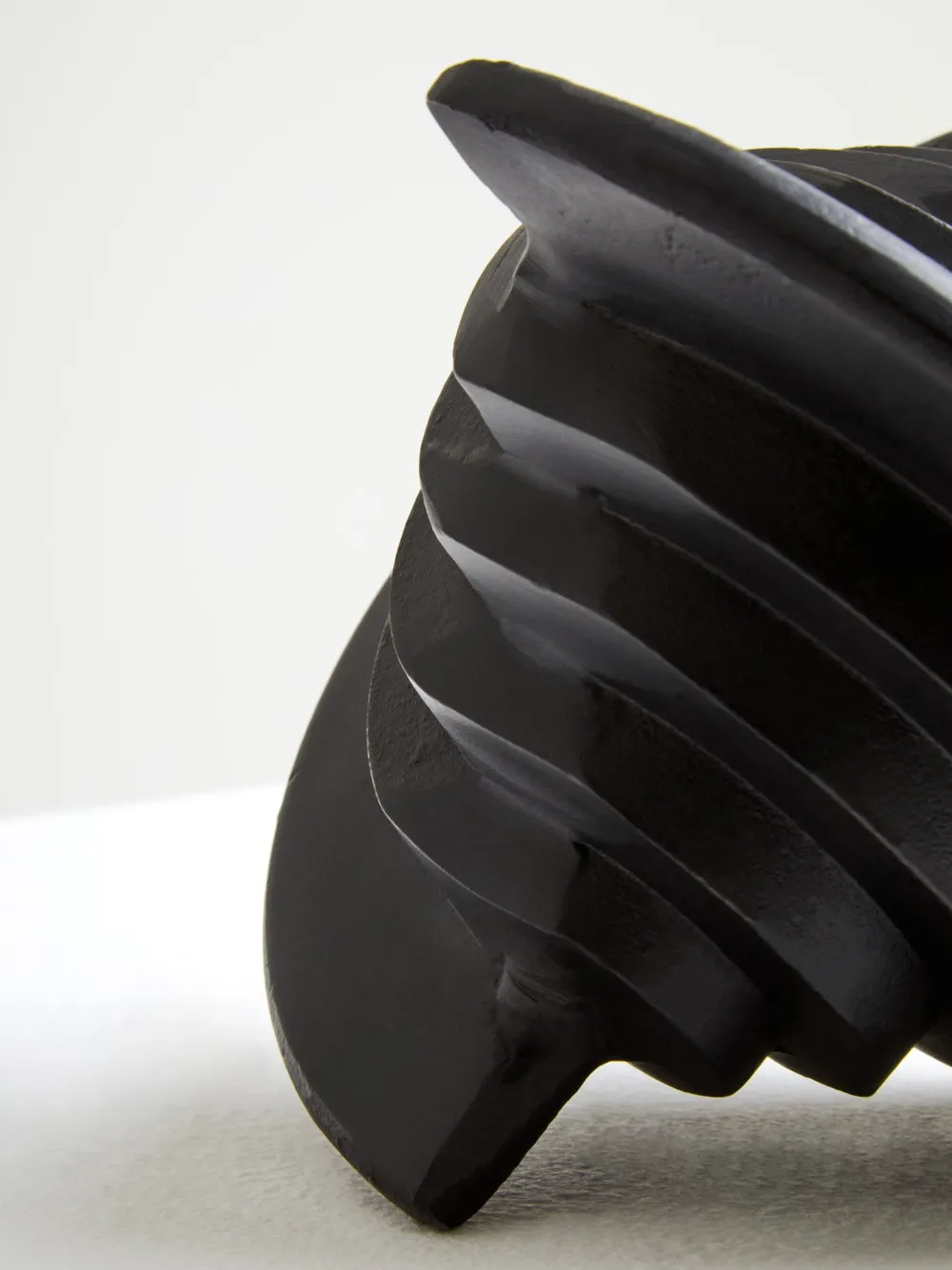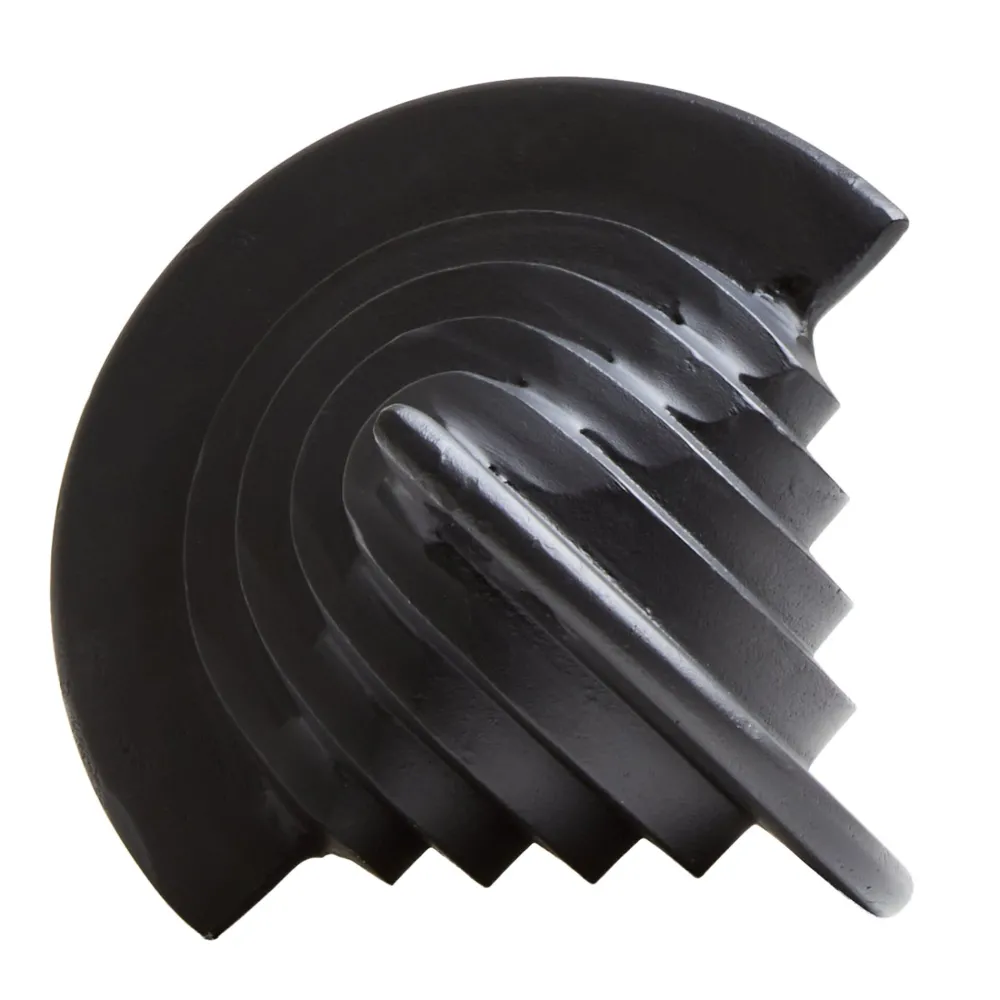Overview: Outstanding in style this home decor sculpture is perfect as a centrepiece in the modern home. This sculpture is finished in wonderfully sleek textured black and when viewed closely you will see the marks of handcraft and individualities of every piece.