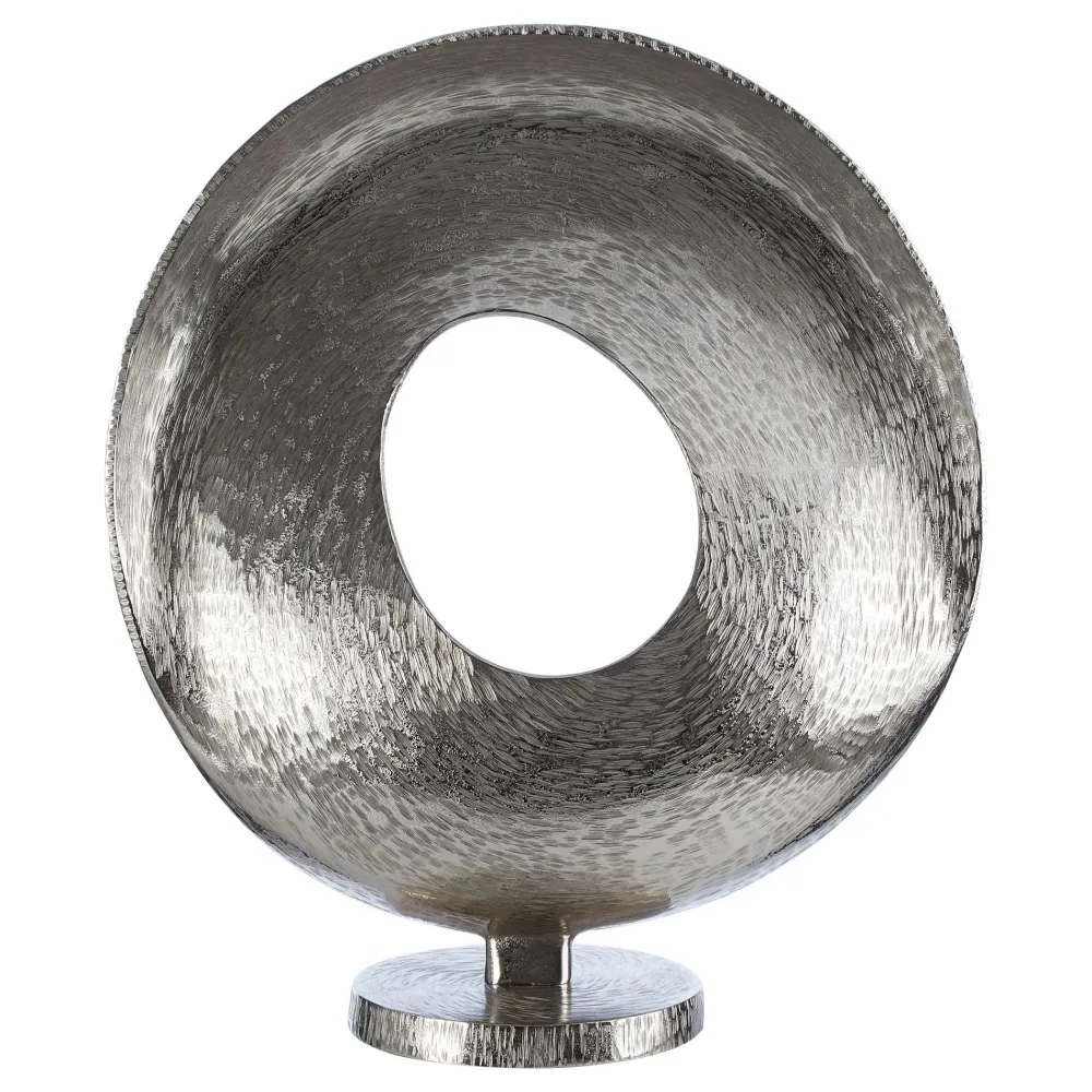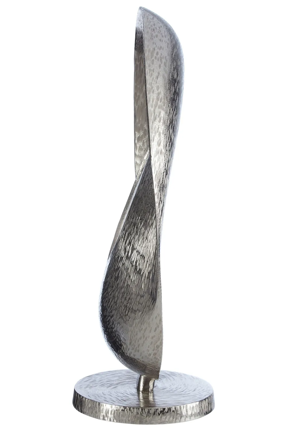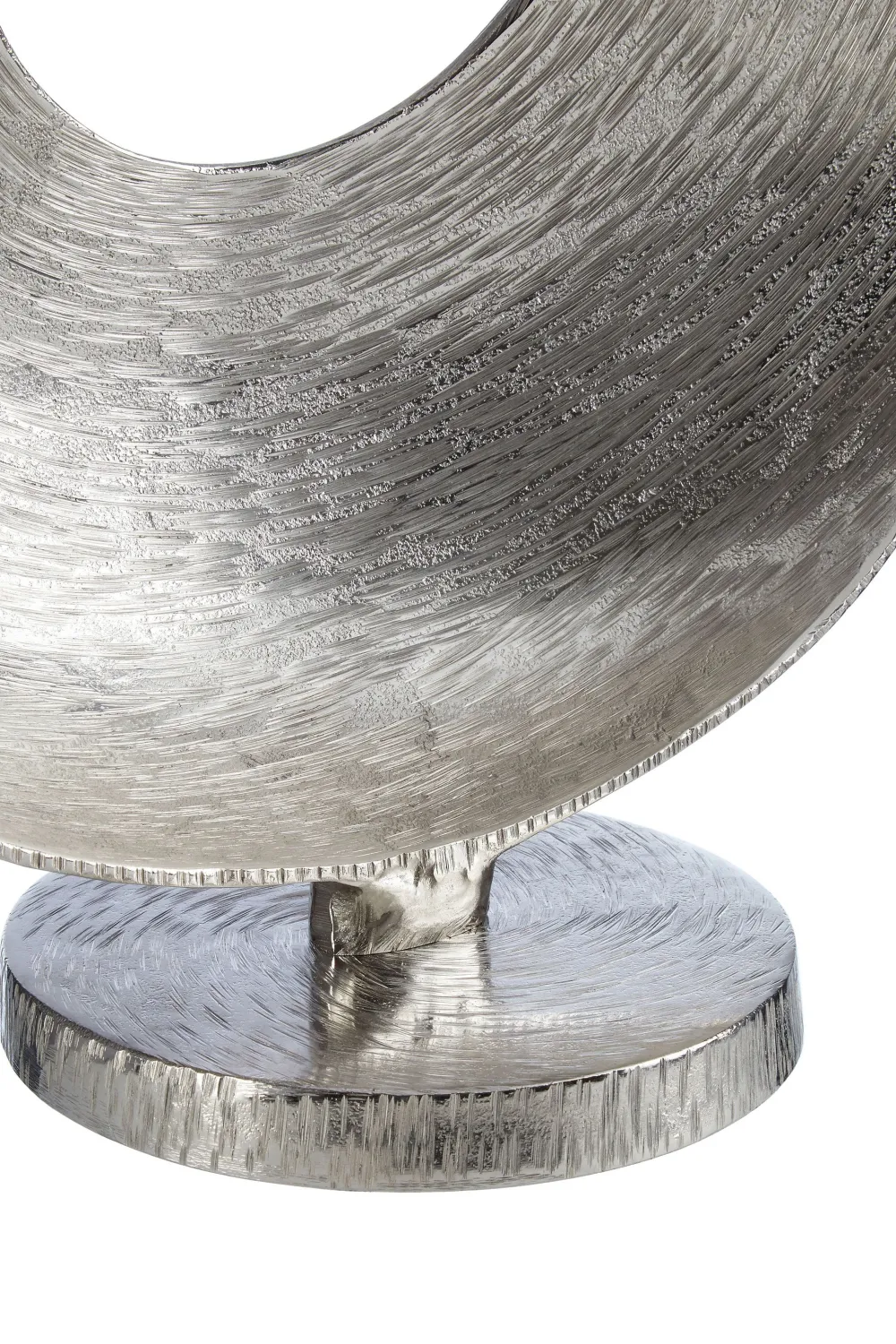 Overview: Outstanding in style this home decor sculpture is perfect as a centrepiece in the modern home. This sculpture is finished in wonderfully sleek reflective silver and when viewed closely you will see the marks of handcraft and individualities of every piece.