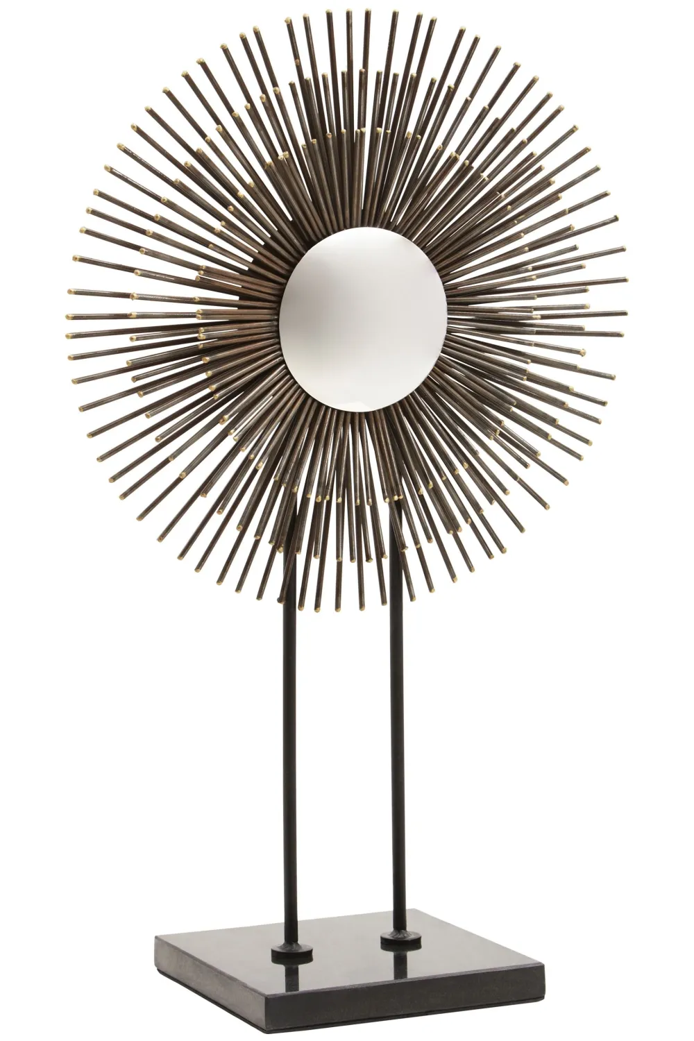 - Material: Marble Base / Iron Sculpture / Features Round Convex Mirror